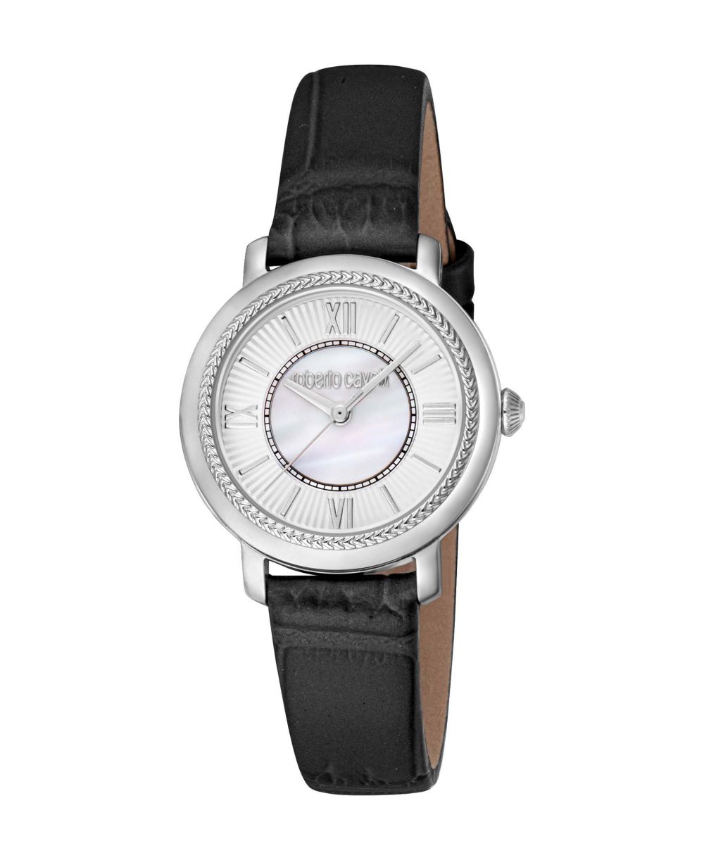 Roberto Cavalli Womens Quartz Black Leather Watch 30mm