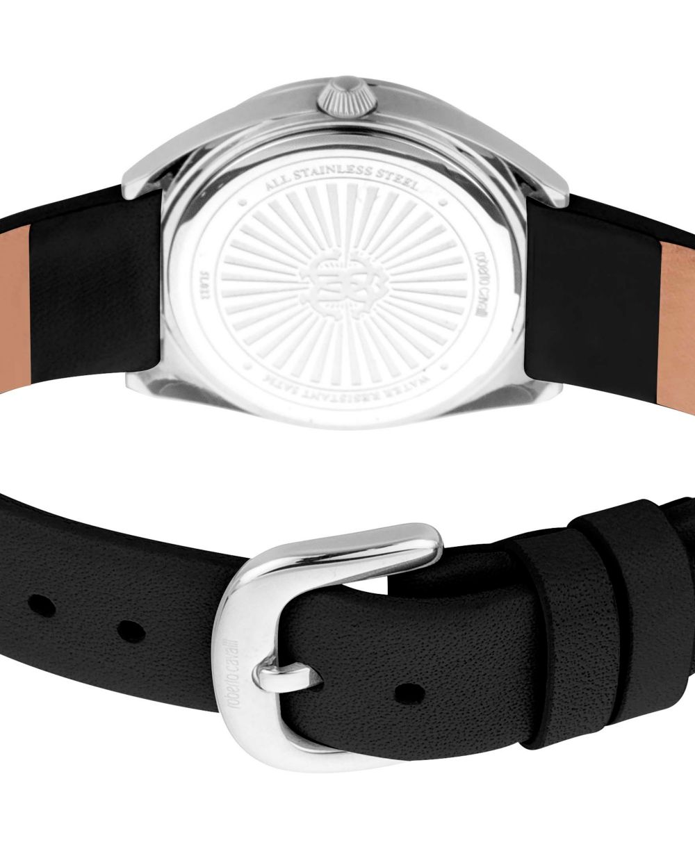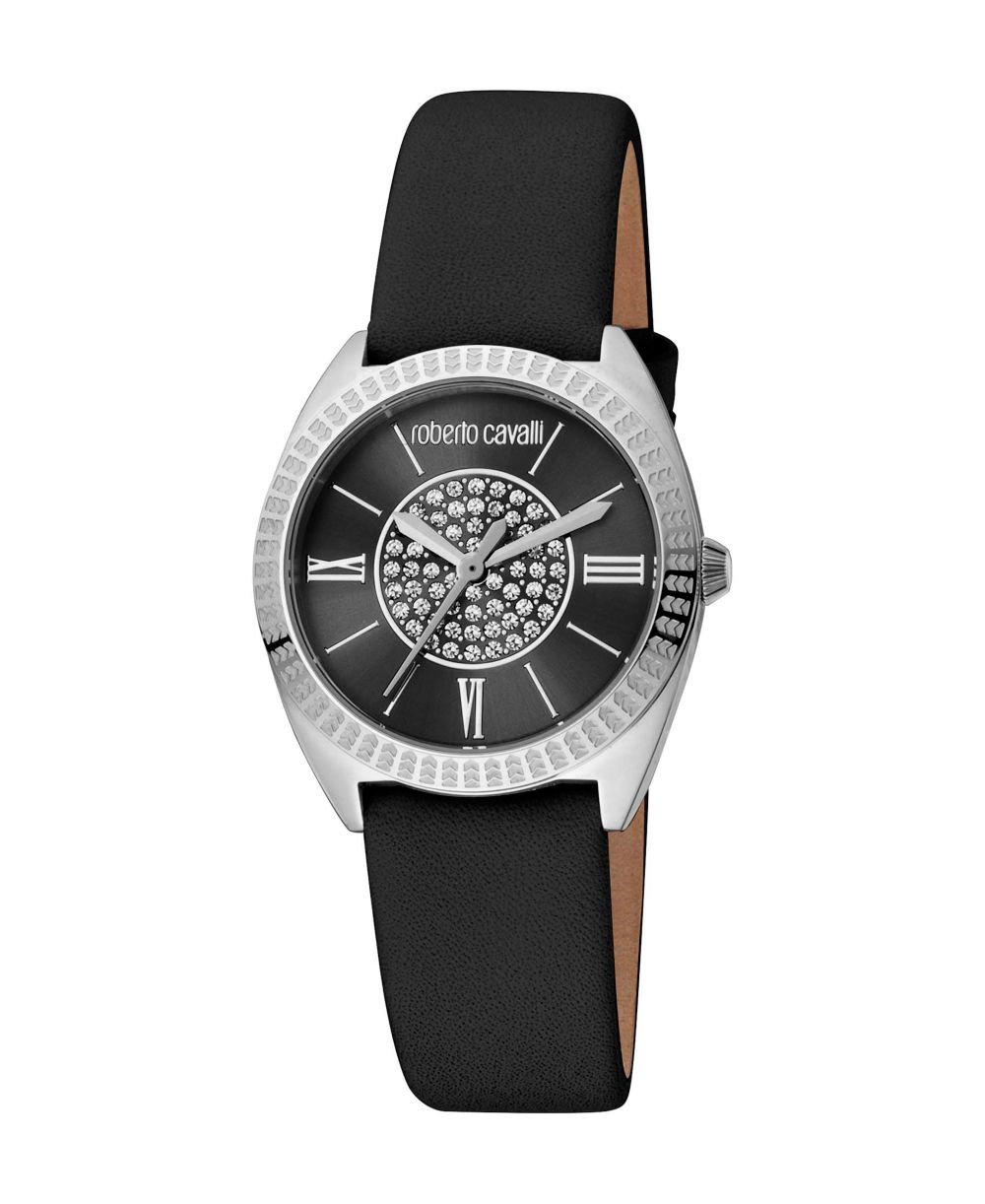 Roberto Cavalli Womens Quartz Black Leather Watch 30mm