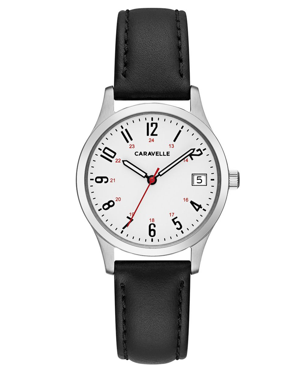 Caravelle Womens Black Leather Strap Watch 30mm