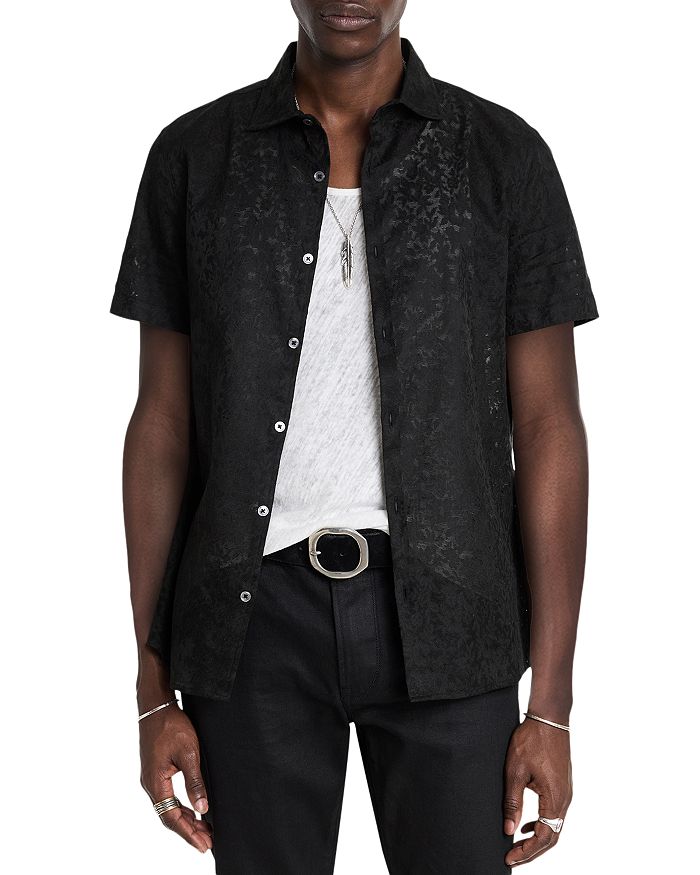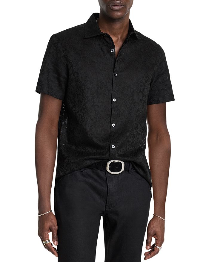 John Varvatos Cotton Lace Jacquard Regular Fit Button Down Shirt