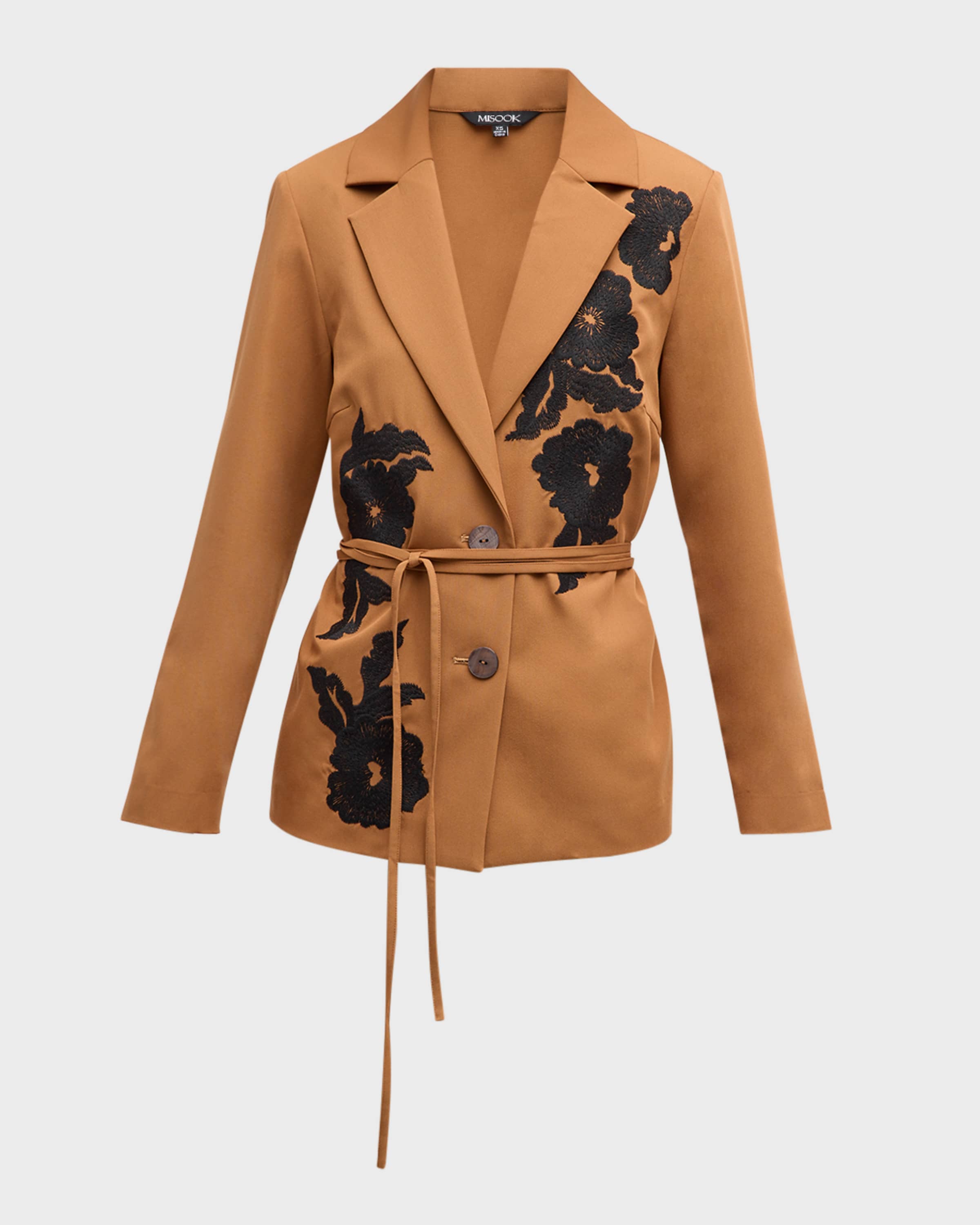 Misook Floral-Embroidered Tailored Twill Jacket
