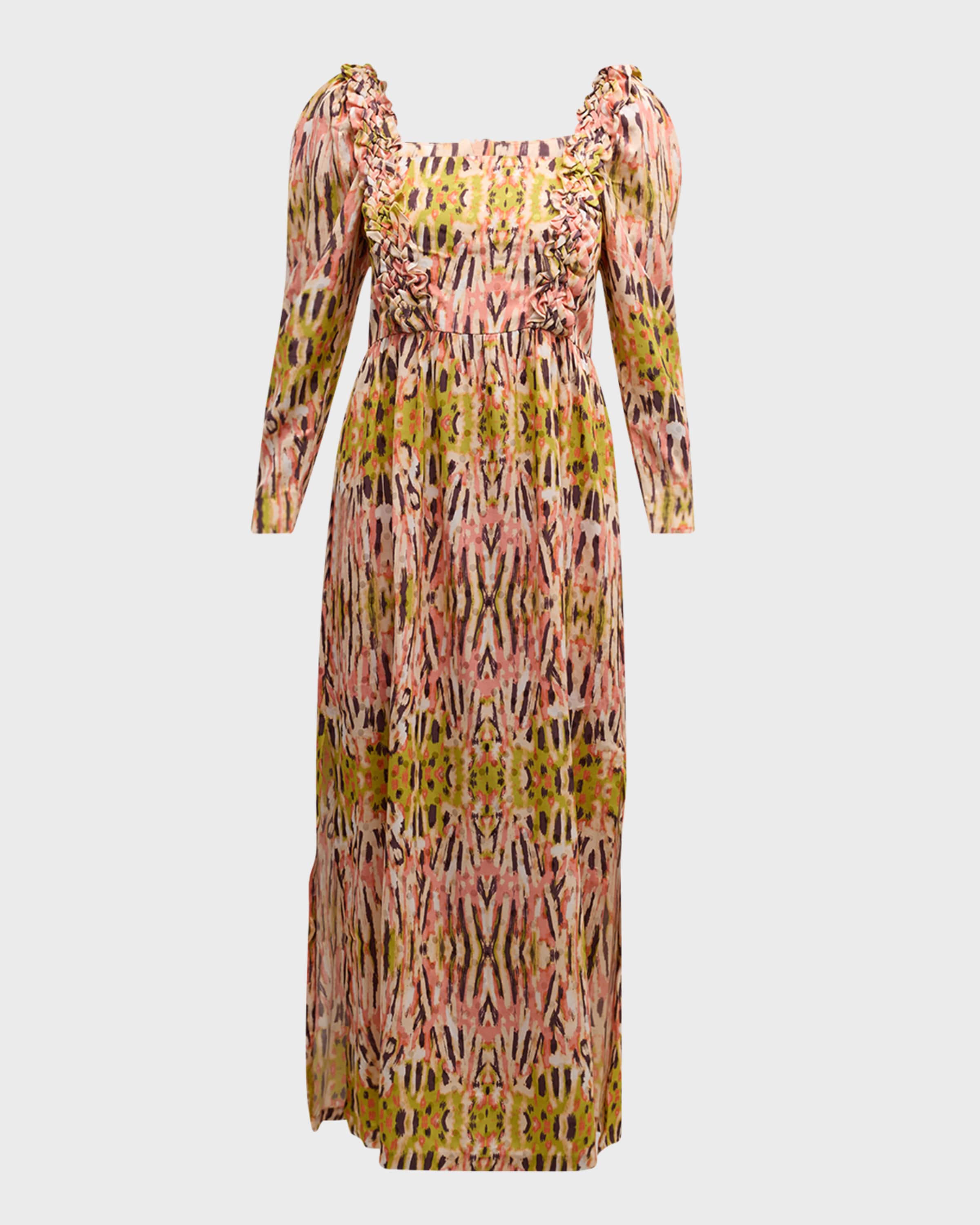 Atelier 17.56 Vitorina Abstract-Print Ruffle-Trim Midi Dress