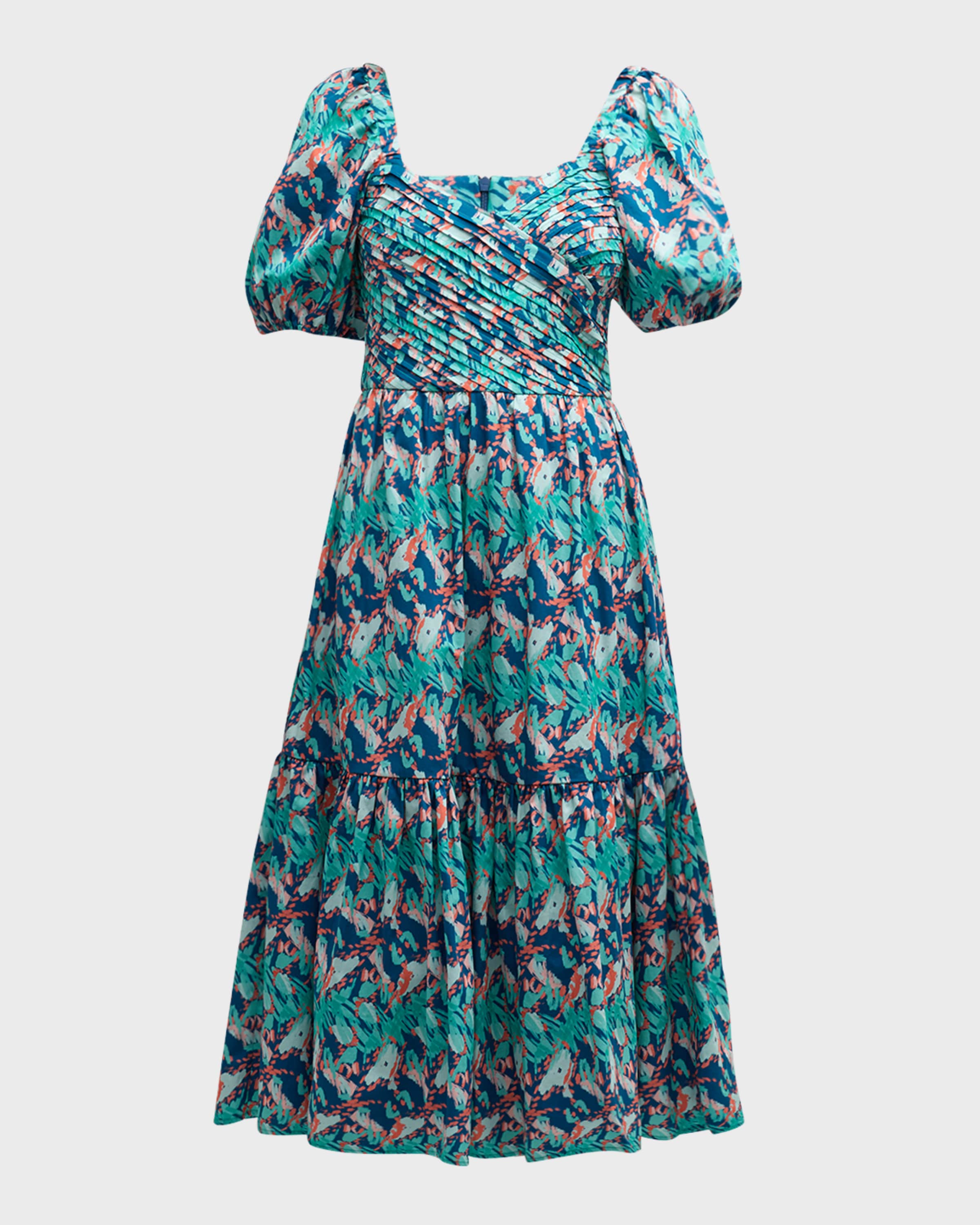 Atelier 17.56 Concordia Puff-Sleeve Abstract-Print Midi Dress