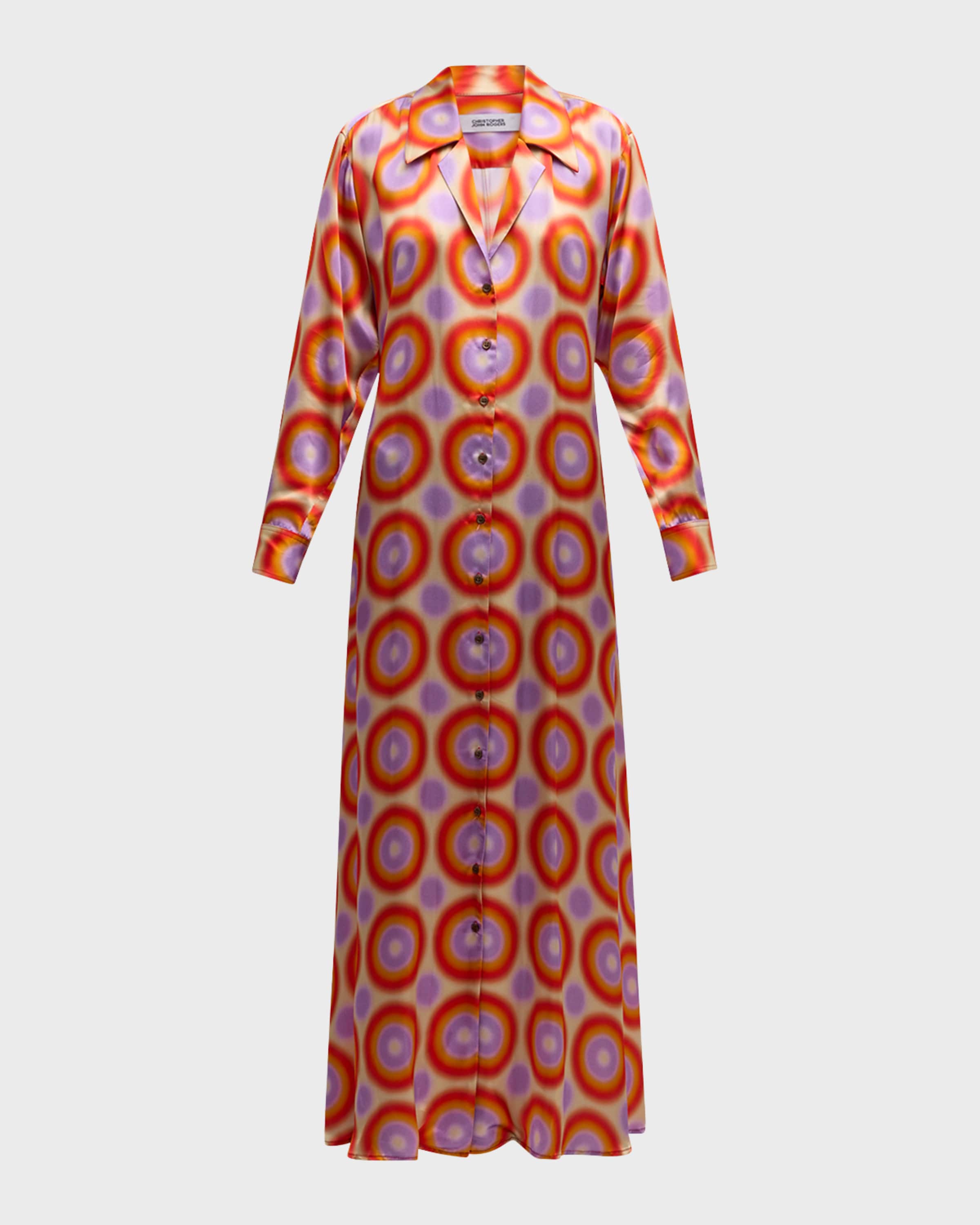 CHRISTOPHER JOHN ROGERS Groovy Dot Tie-Back Long-Sleeve Maxi Shirtdress