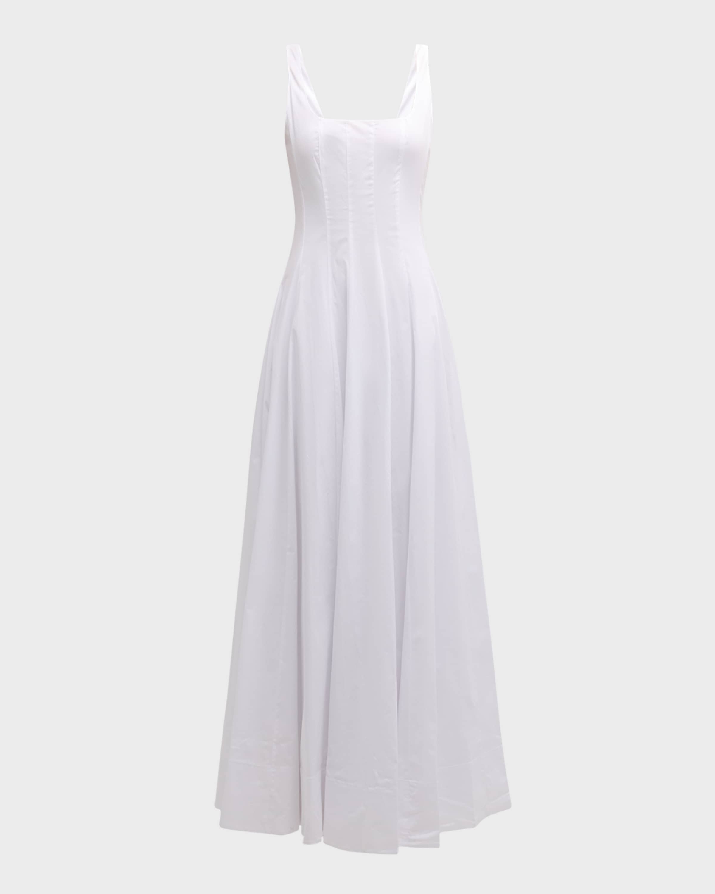 STAUD Wells Sleeveless Cotton Poplin Corset Maxi Dress