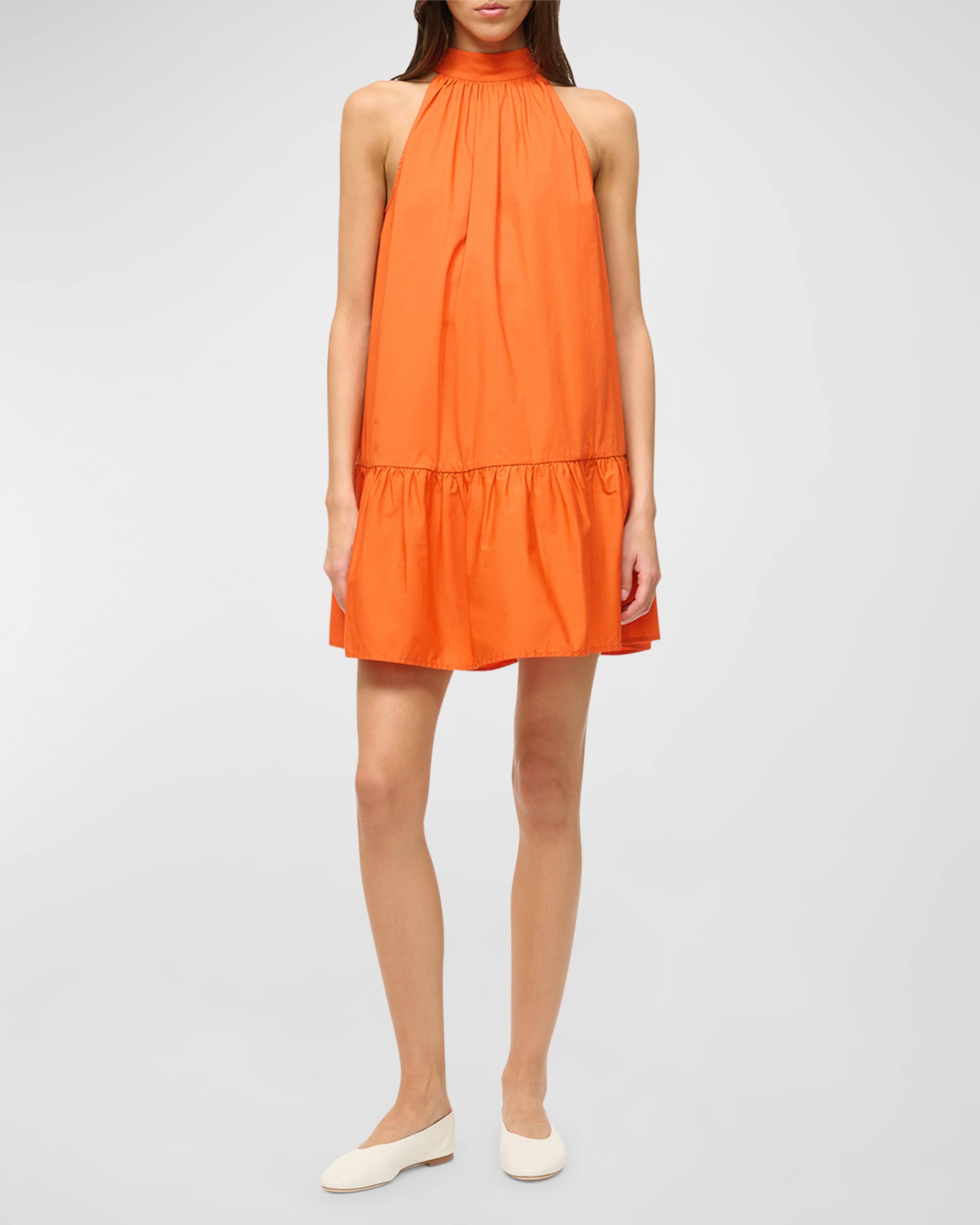 STAUD Marlowe Tie-Neck Mini Cotton Poplin Dress
