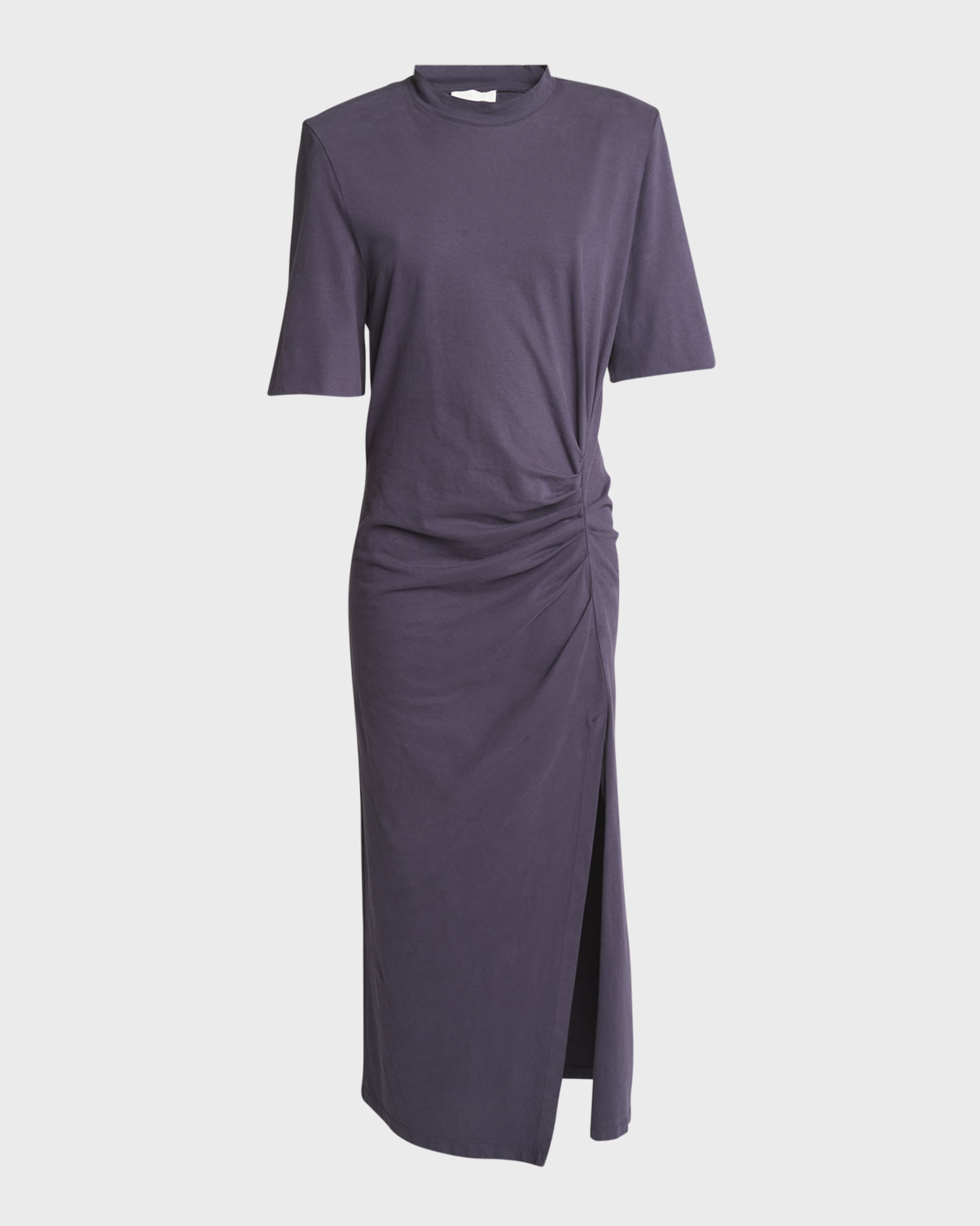 Isabel Marant Lexia Strong-Shoulder Ruched Midi T-Shirt Dress