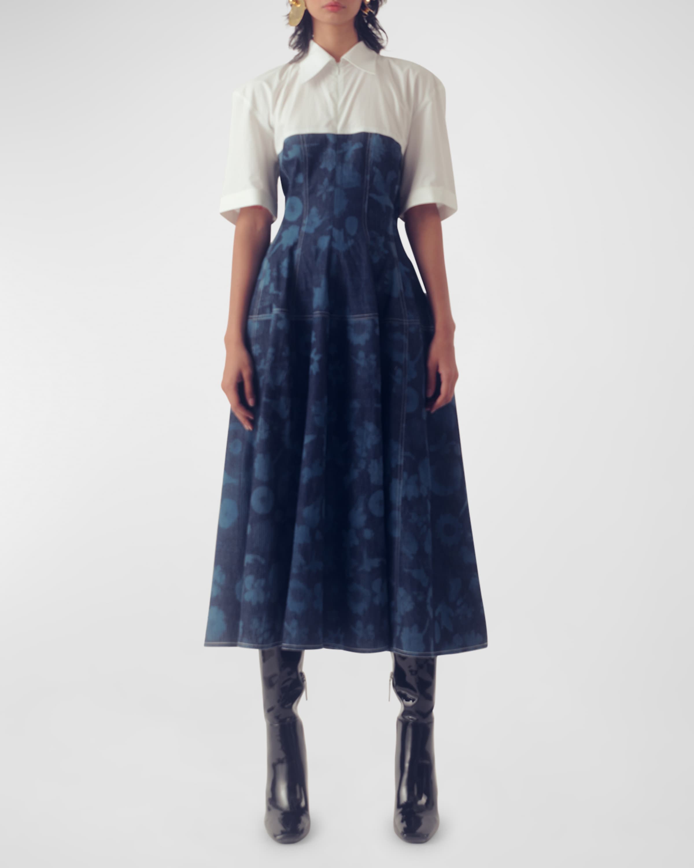 LOVEBIRDS Your Denim Floral-Print Midi Shirtdress