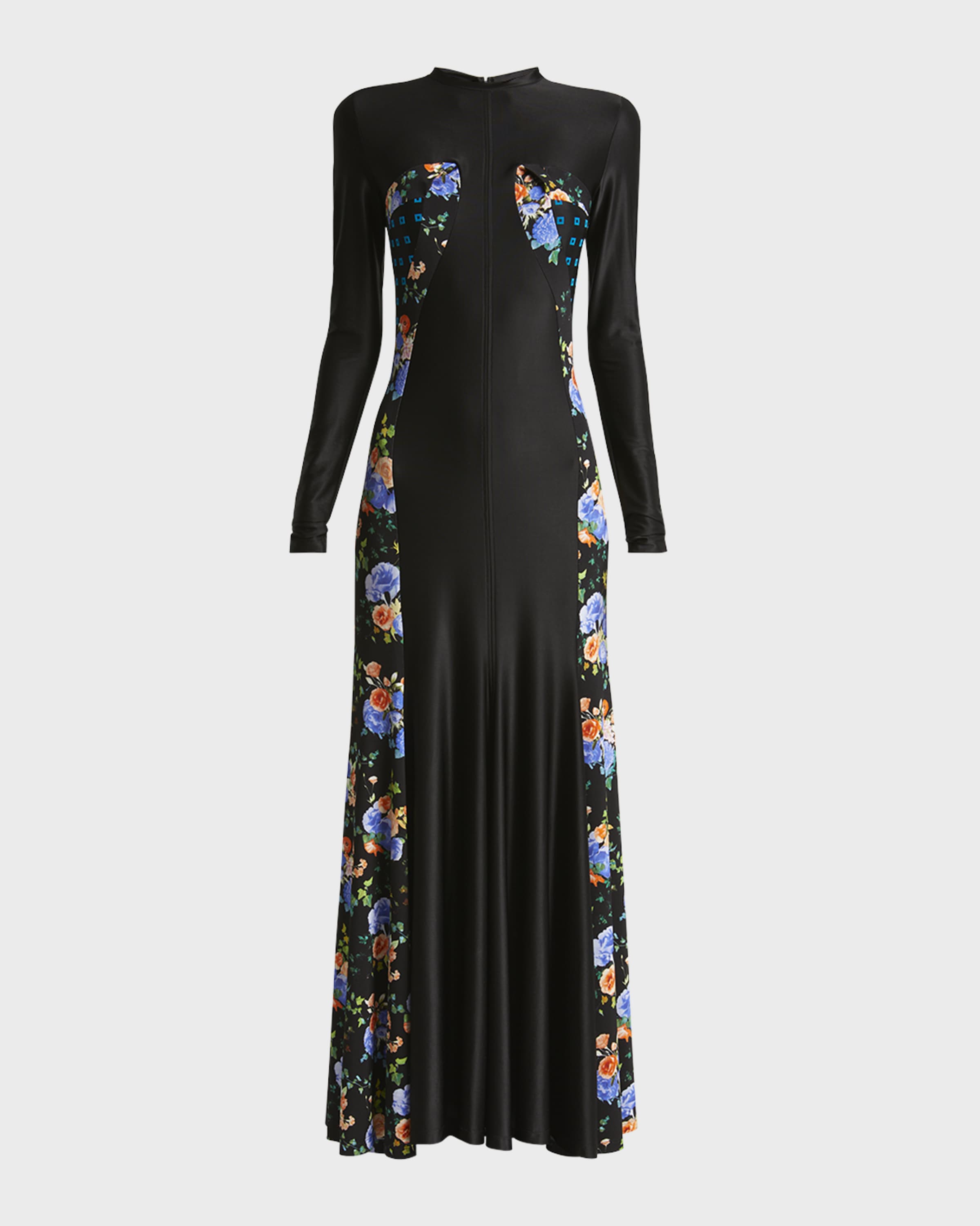 Rabanne Floral Paneled Long-Sleeve Maxi Dress
