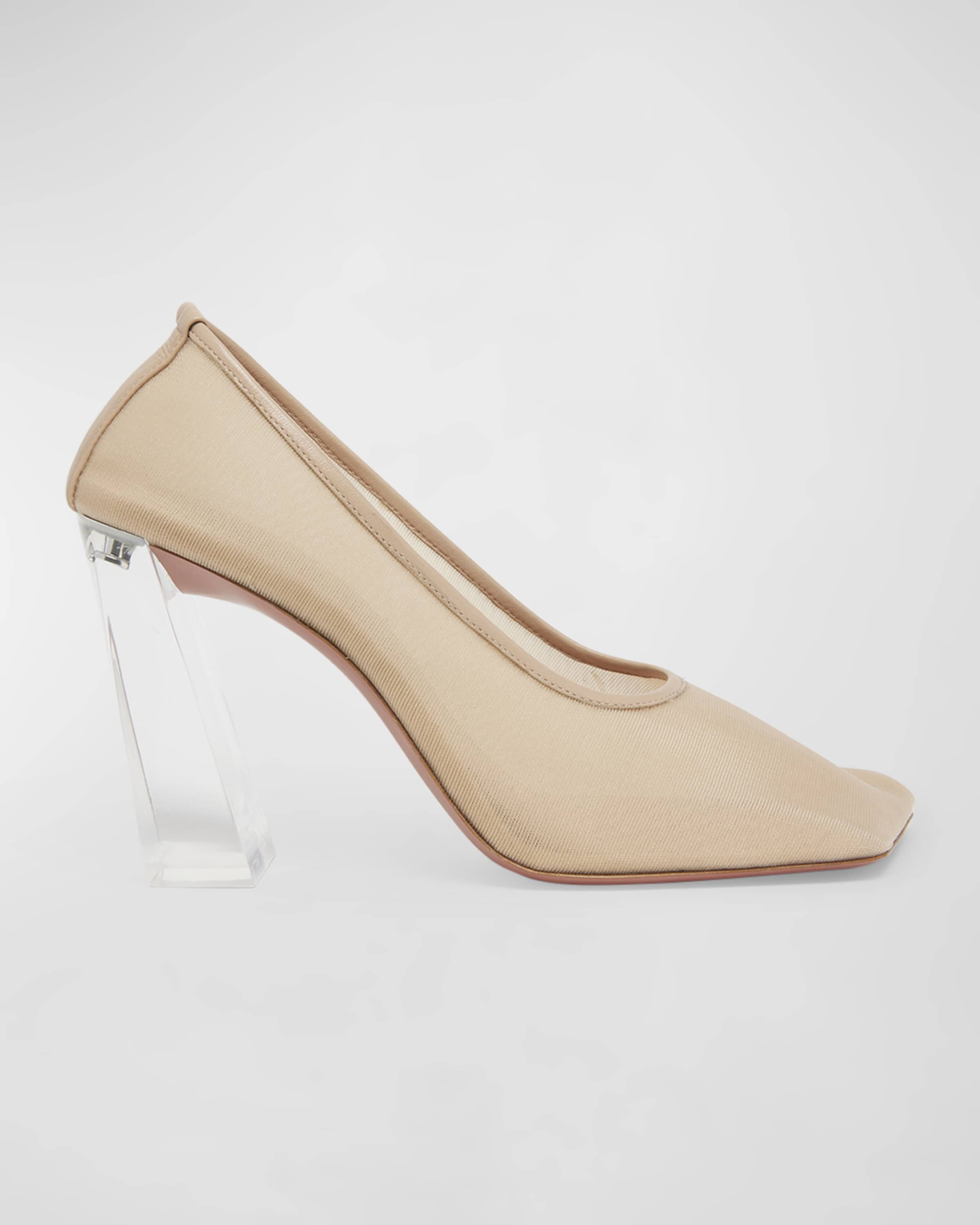 Amina Muaddi Charlotte Mesh Plexi-Heel Pumps