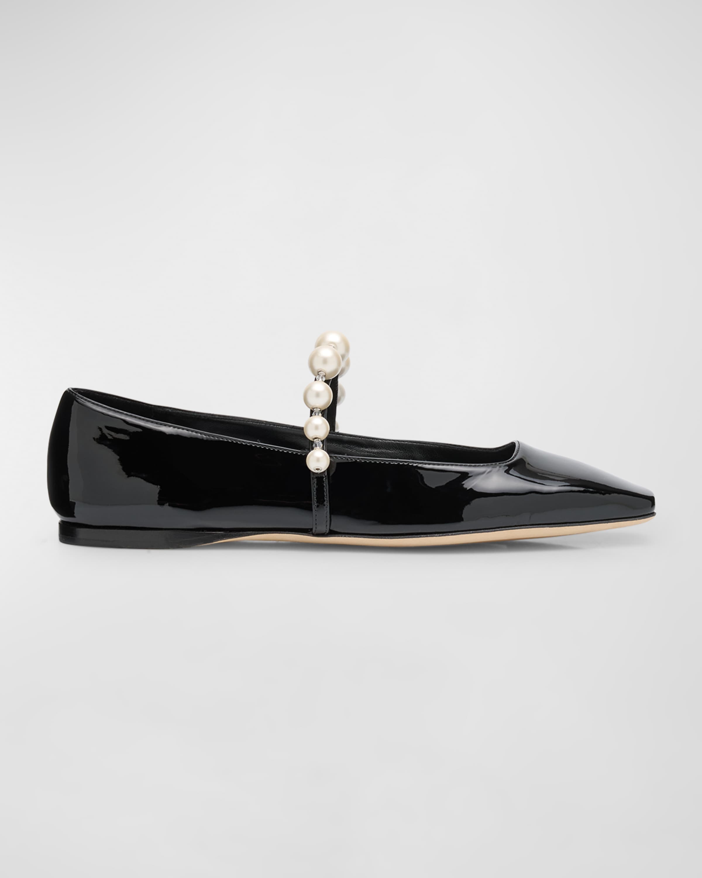 Jimmy Choo Ade Pearly-Strap Patent Ballerina Flats