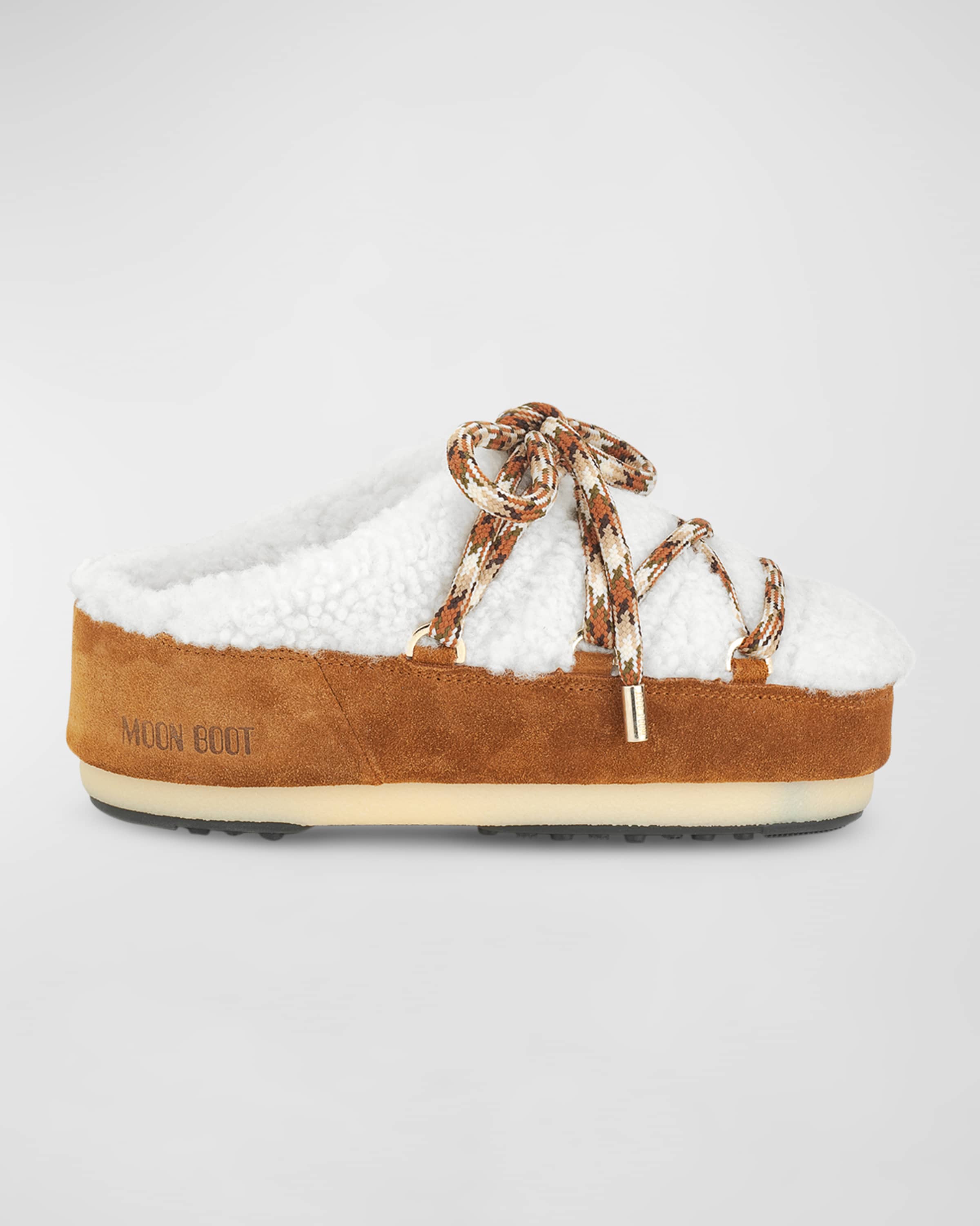 Moon Boot Suede Shearling Lace-Up Mules