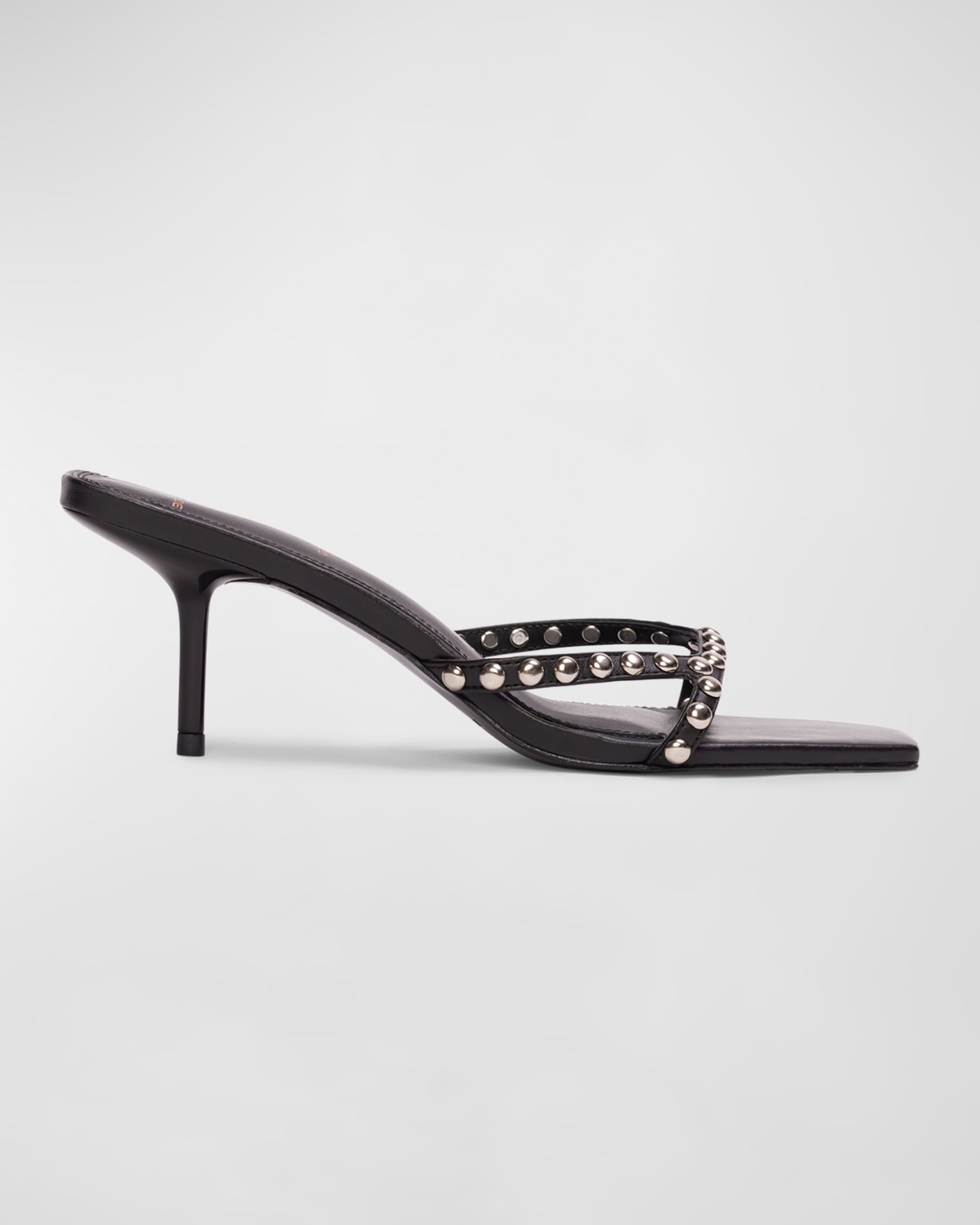 Black Suede Studio Dome Stud Leather Kitten-Heel Slide Sandals