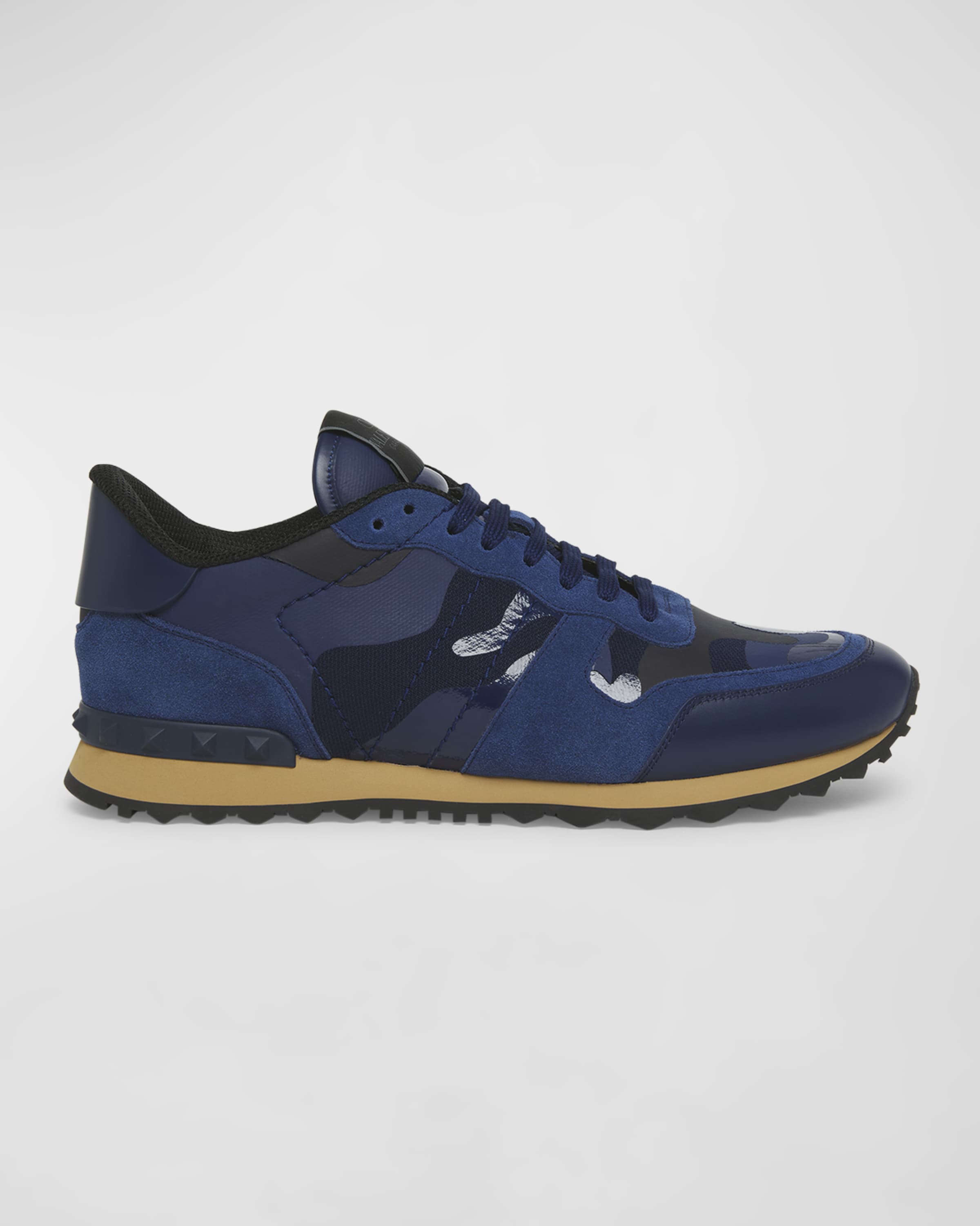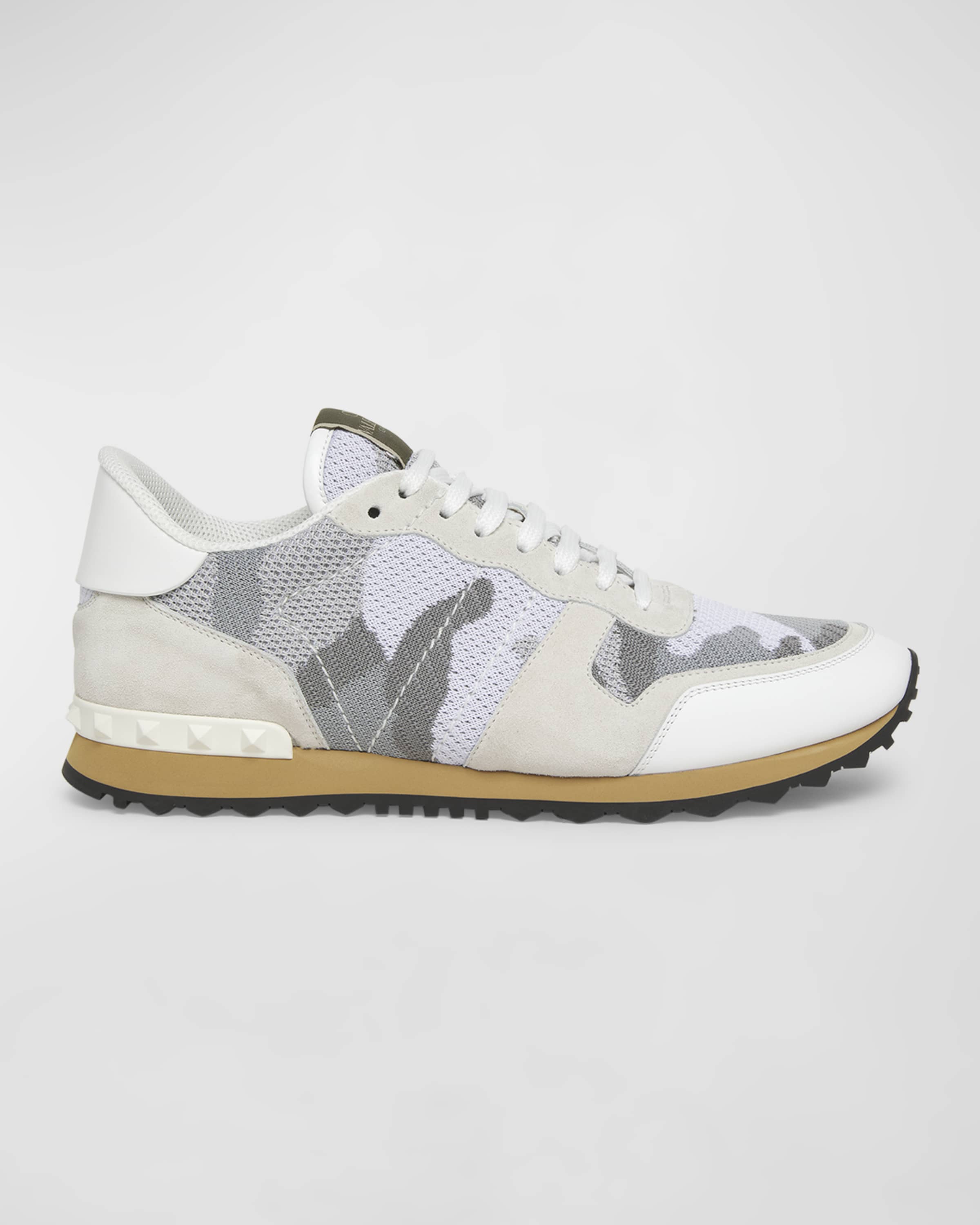 Valentino Garavani Mens Rockrunner Camo-Print Mesh Runner Sneakers