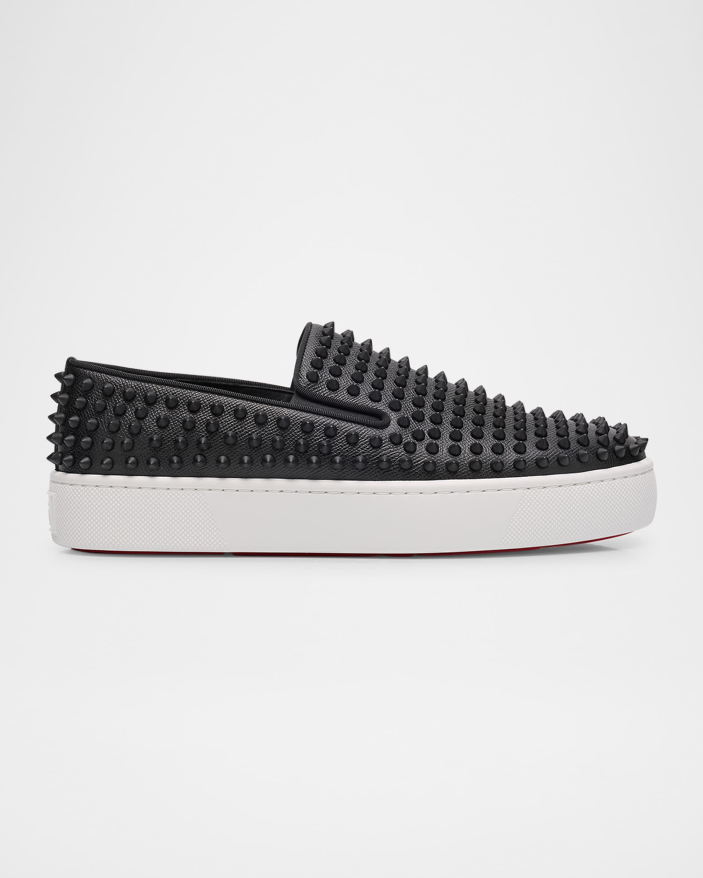 Christian Louboutin Mens Spikeboat Leather Slip-On Sneakers