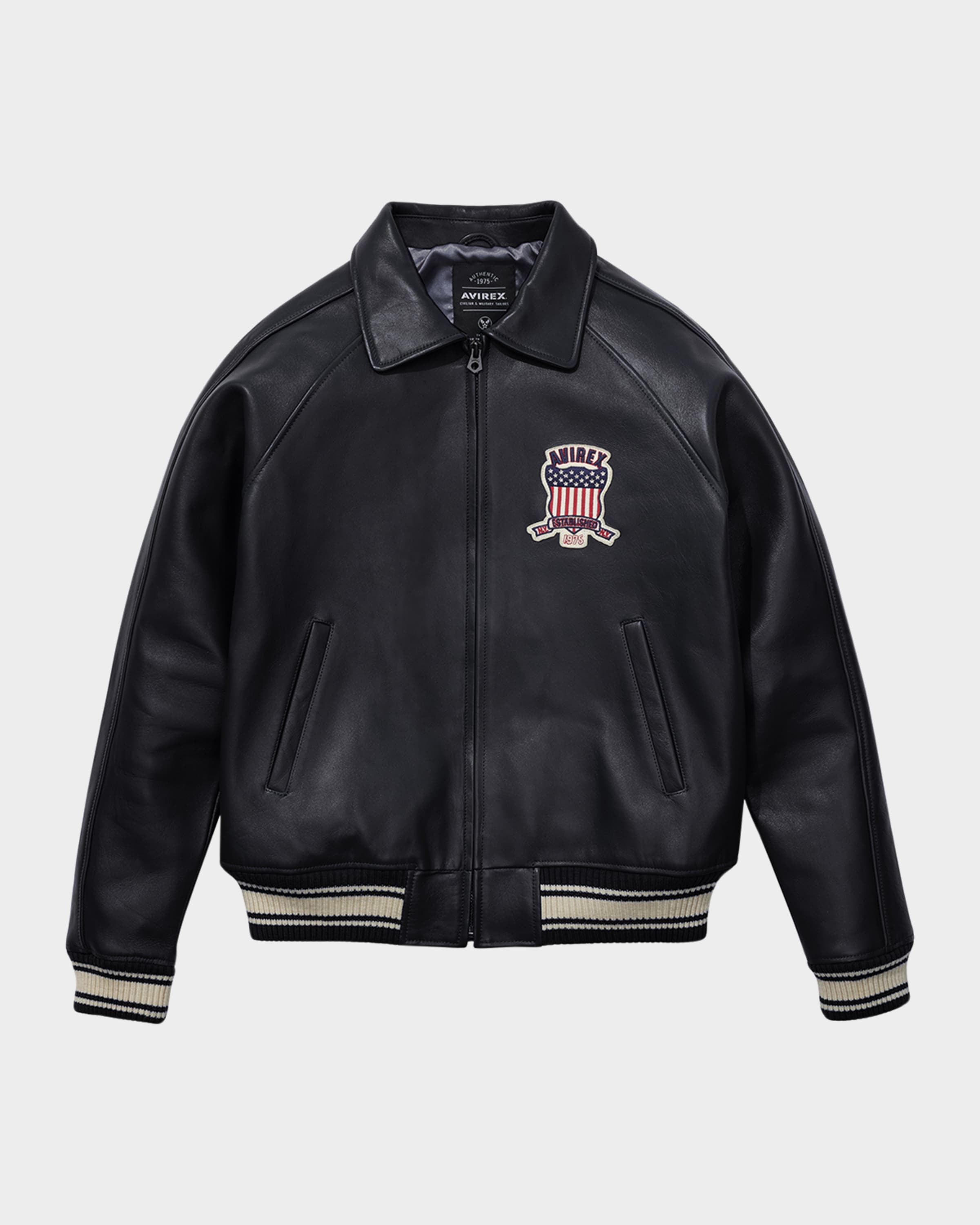 AVIREX Mens Icon Logo Leather Bomber Jacket