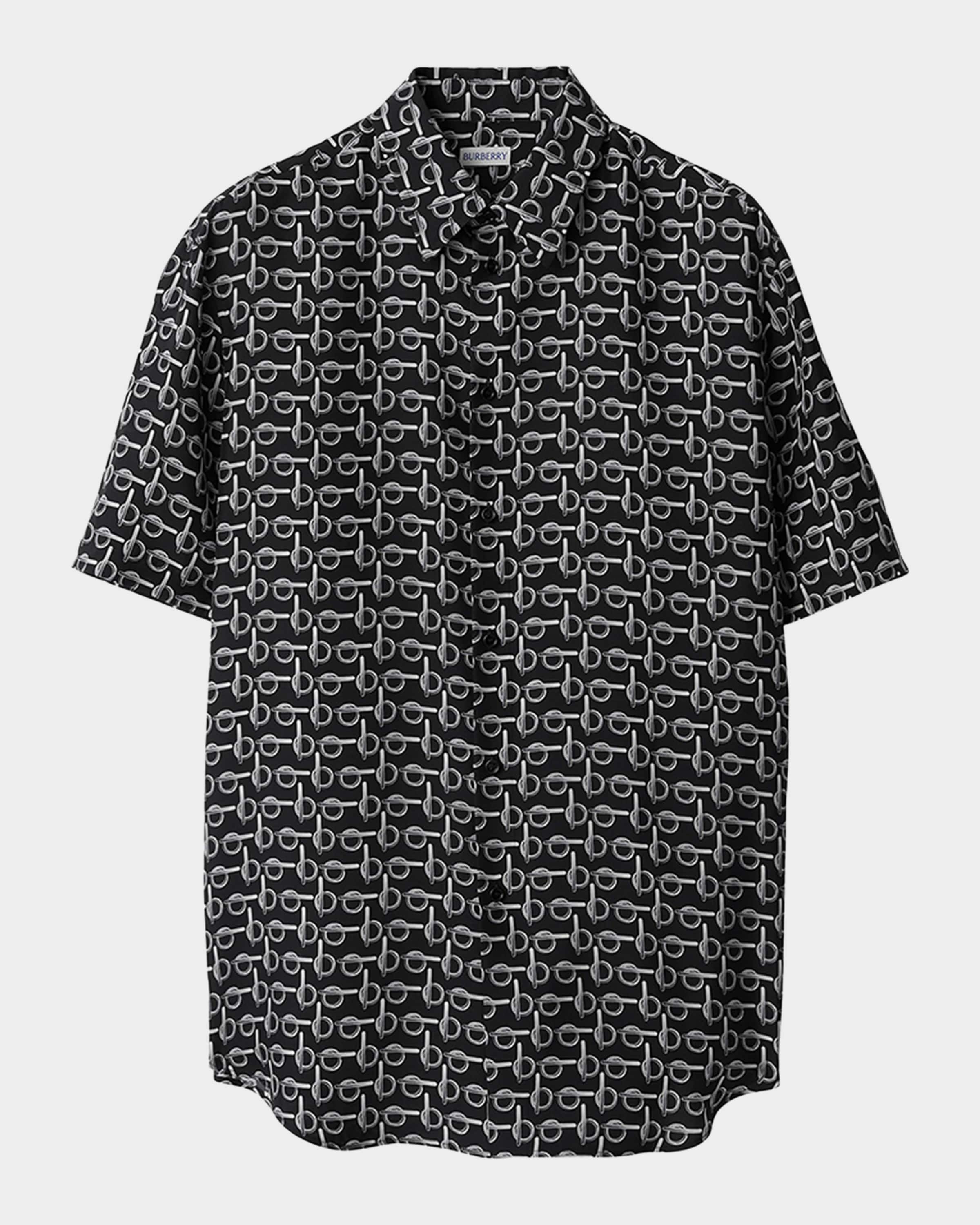 Burberry Mens B Closure Mulberry Silk Sport Shirt