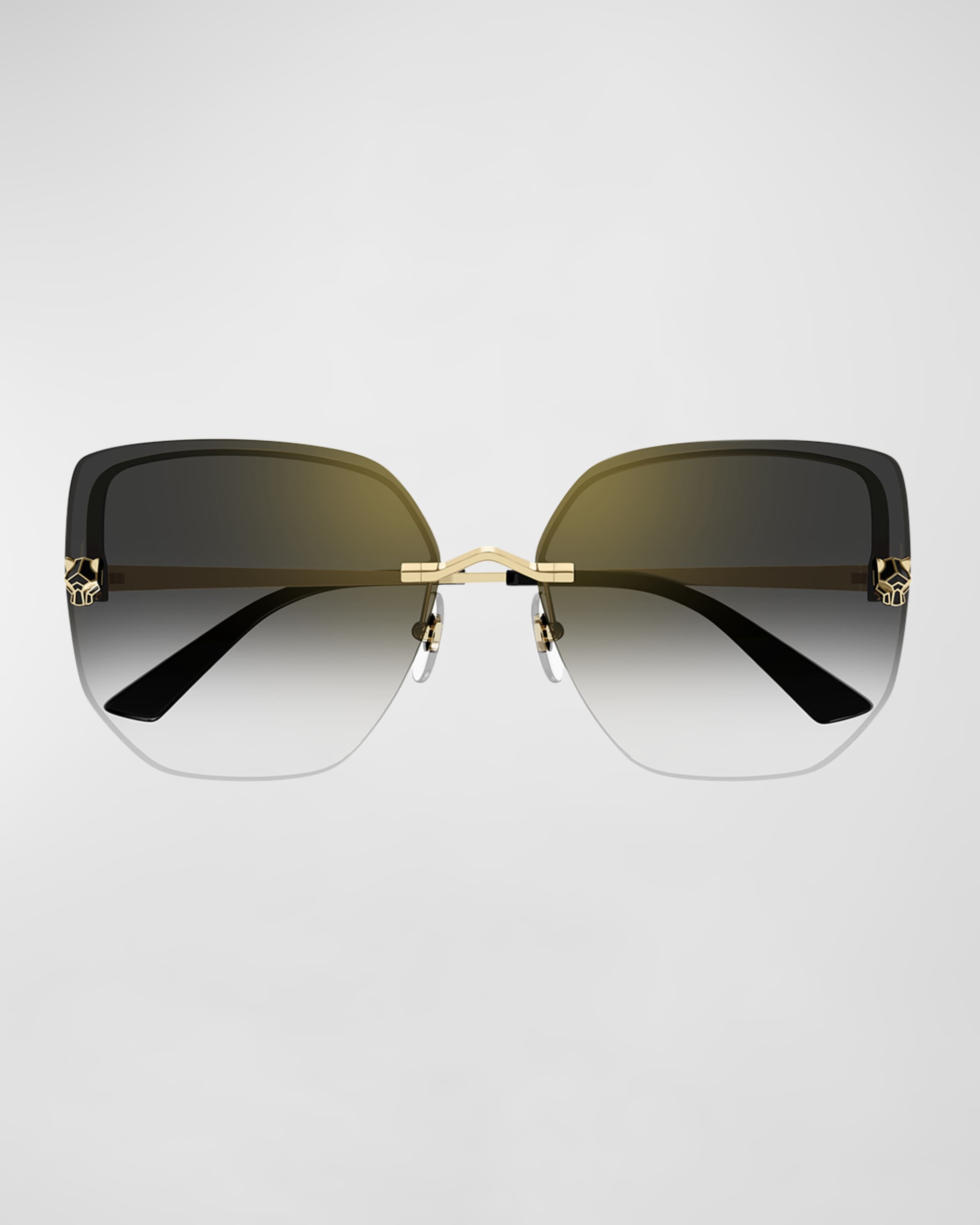 Cartier Panther Rimless Metal Alloy Butterfly Sunglasses