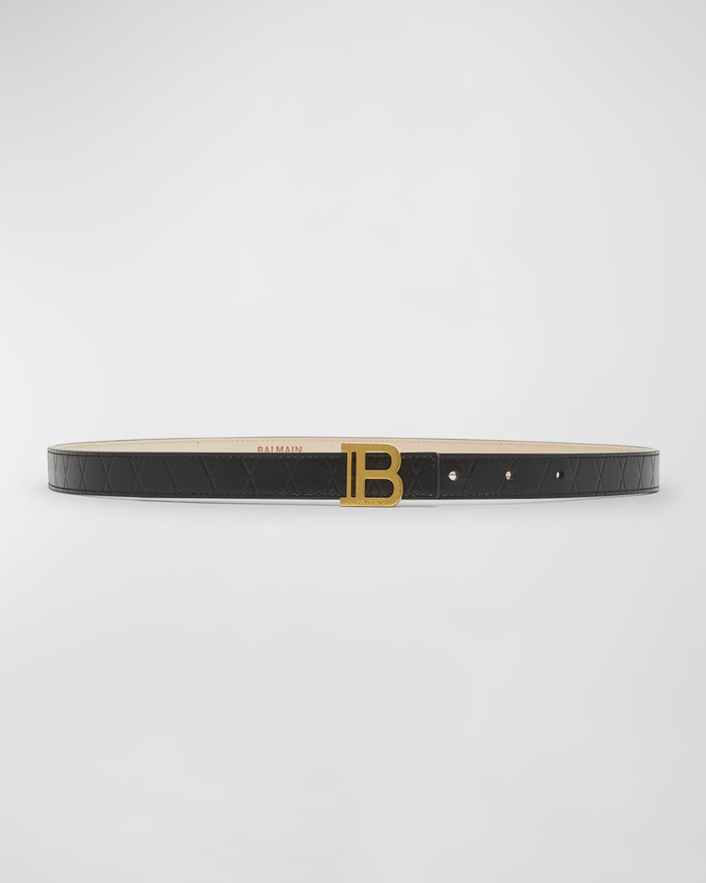 Balmain B-Monogram Embossed Leather Skinny Belt