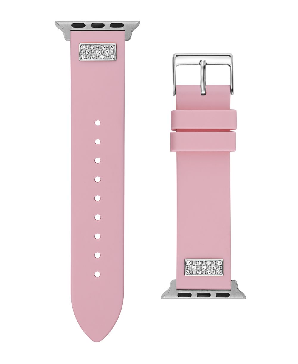 GUESS Womens Pink Silicone Strap with Glitz Insert 38mm 39mm 40mm Apple Watch Band