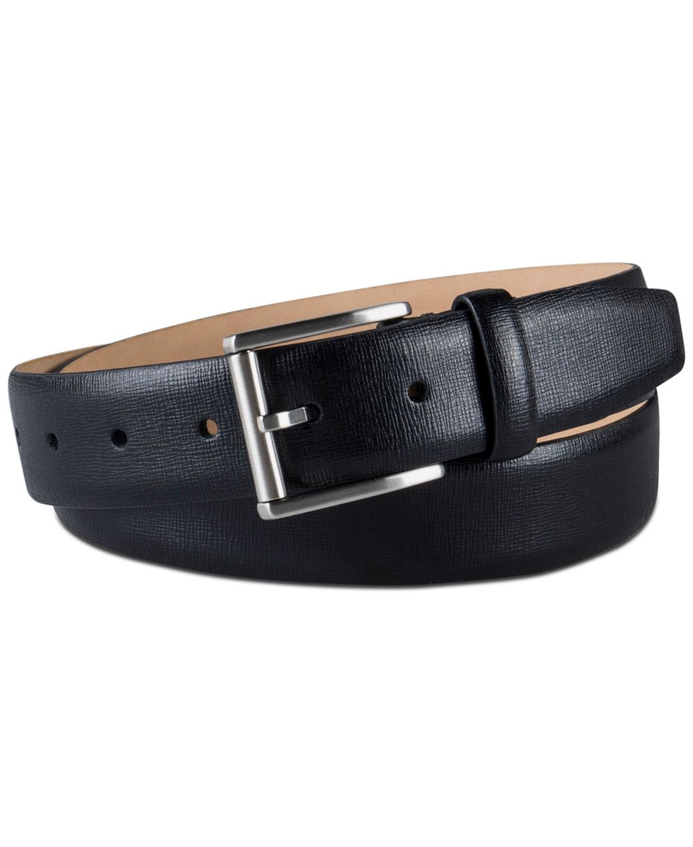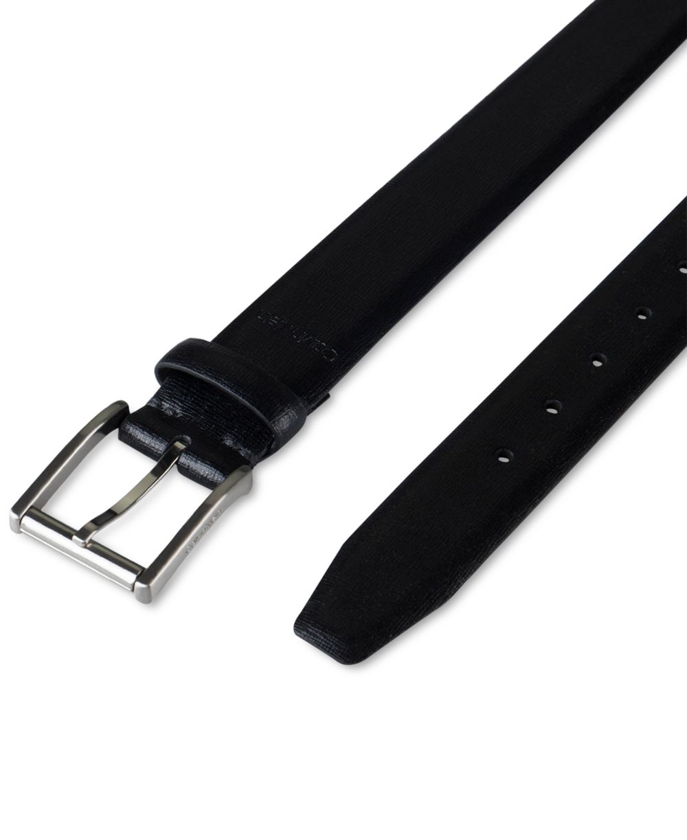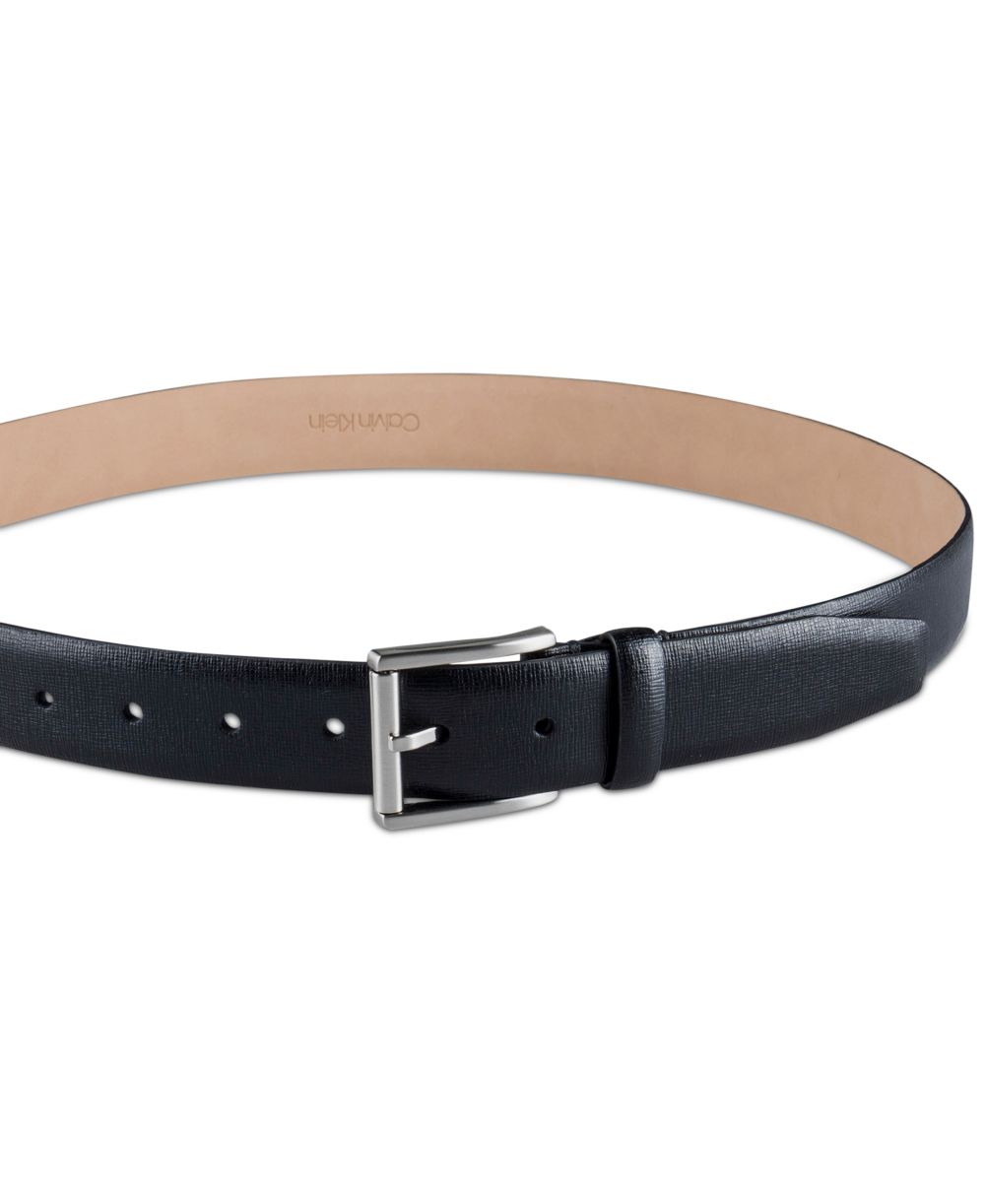 Calvin Klein Mens Textured Leather Roller Bar Buckle Belt