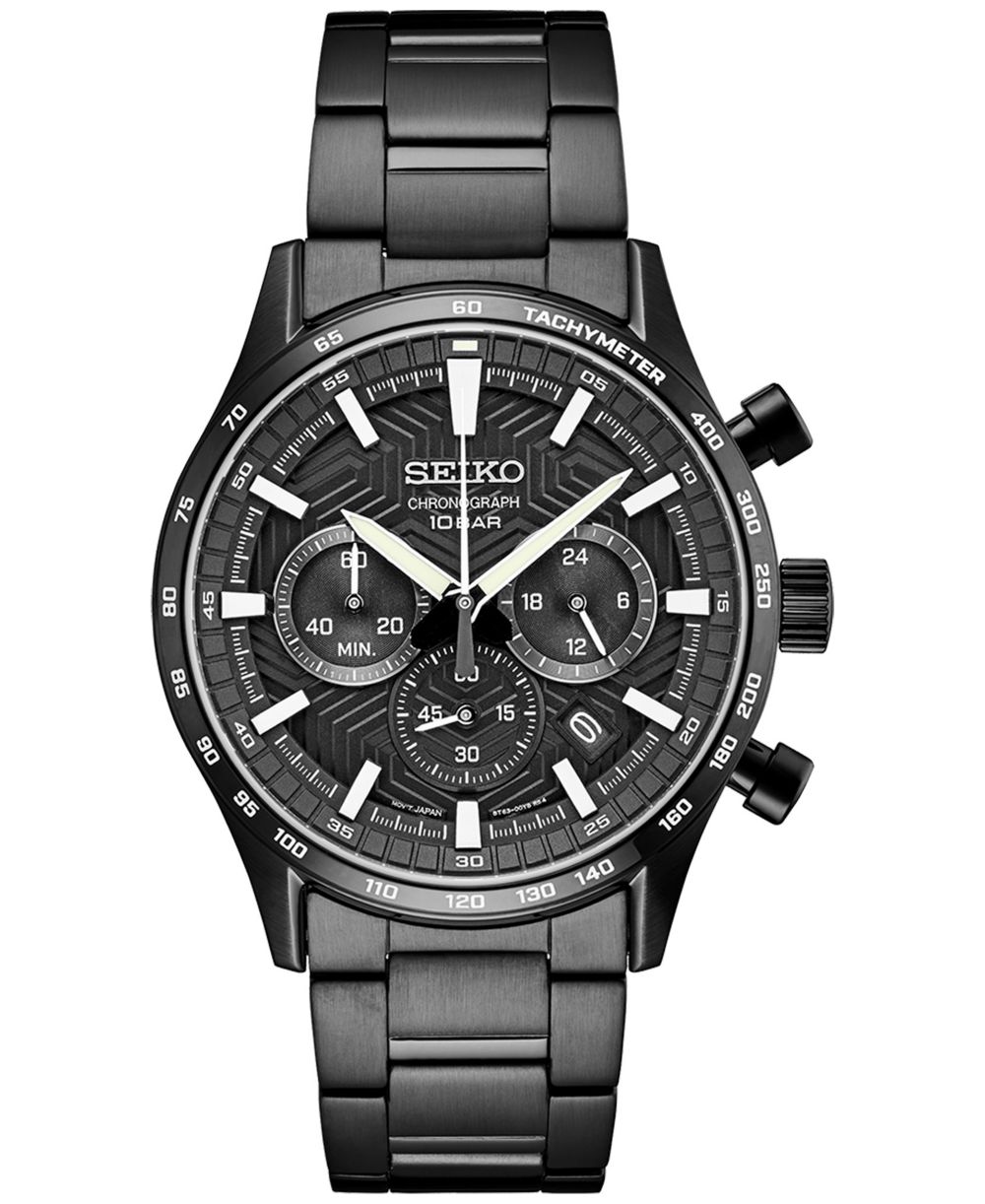 Seiko Mens Chronograph Essentials Black Ion Finish Stainless Steel Bracelet Watch 43mm