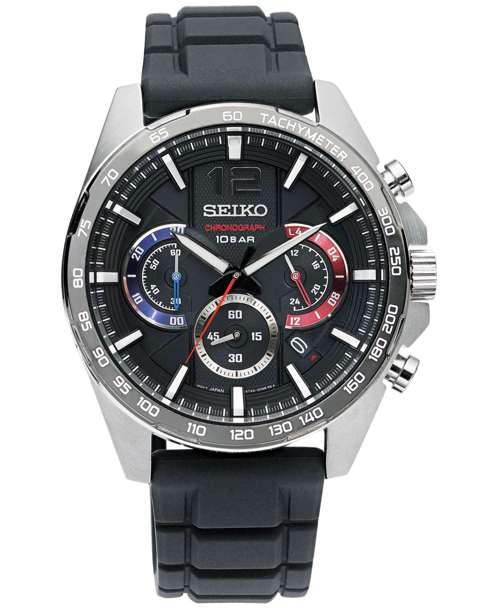 Seiko Mens Essentials Chronograph Black Silicone Strap Watch 43.9mm