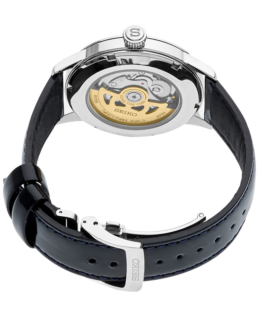 Seiko Mens Automatic Presage Black Leather Strap Watch 40.5mm