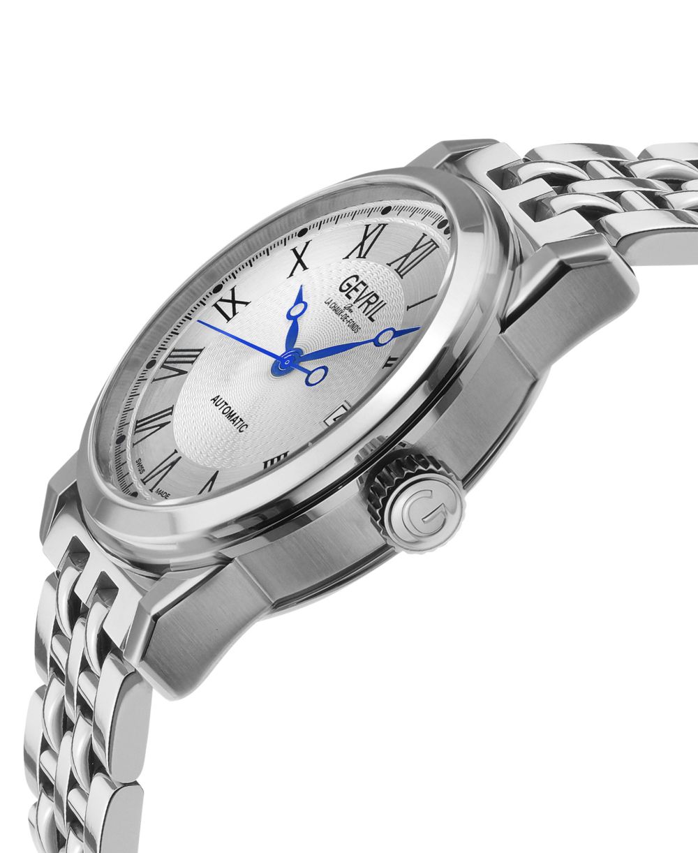 Gevril Mens Madison Swiss Automatic Silver Tone Stainless Steel Watch 39mm