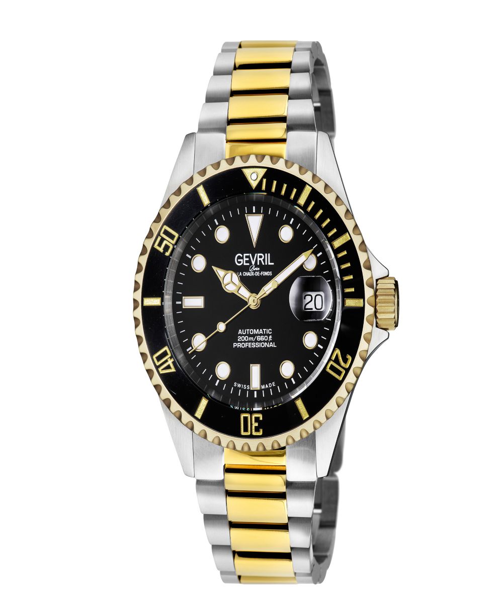 Gevril Mens Wall Street Two Tone Stainless Steel Watch 43mm
