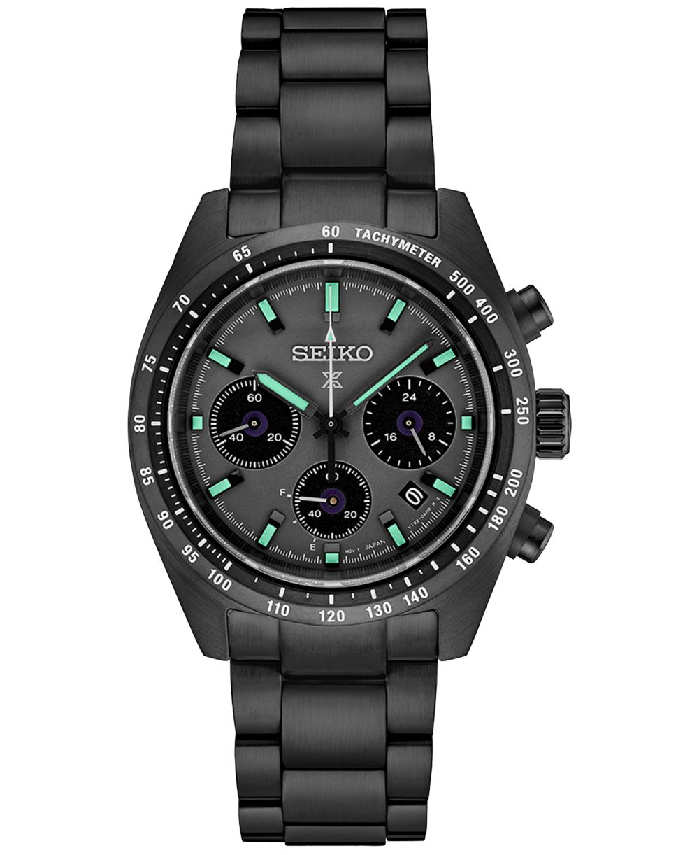 Seiko Mens Chronograph Solar Prospex Speedtimer Black Ion Plated Stainless Steel Bracelet Watch 39mm