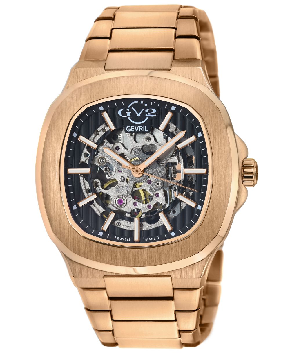 GV2 by Gevril Mens Potente Automatic Ion Plating Rose Stainless Steel Bracelet Watch 40mm