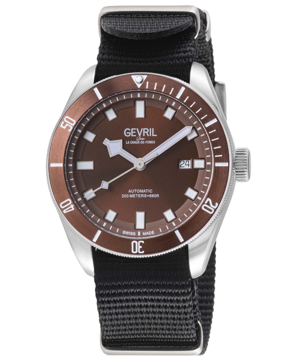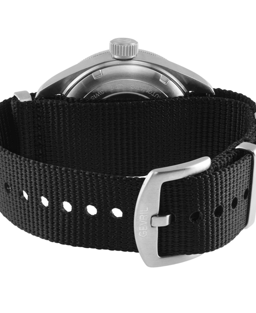 Gevril Mens Yorkville Swiss Automatic Black Nylon Watch 43mm