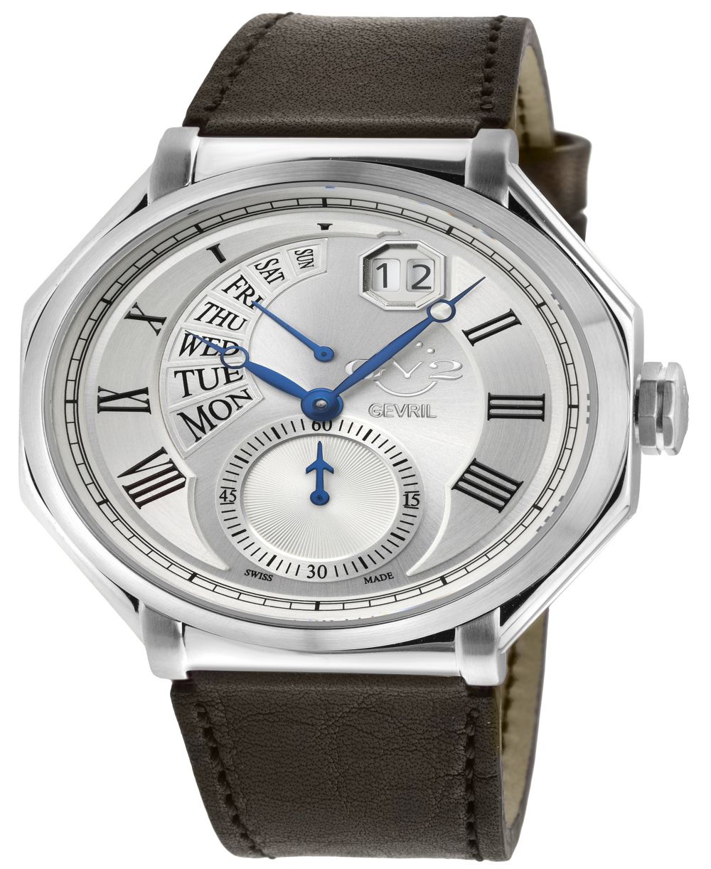 GV2 by Gevril Mens Marchese Brown Leather Watch 44mm
