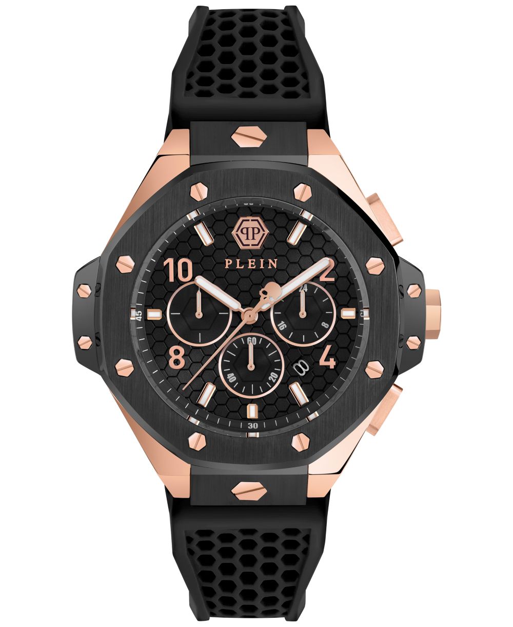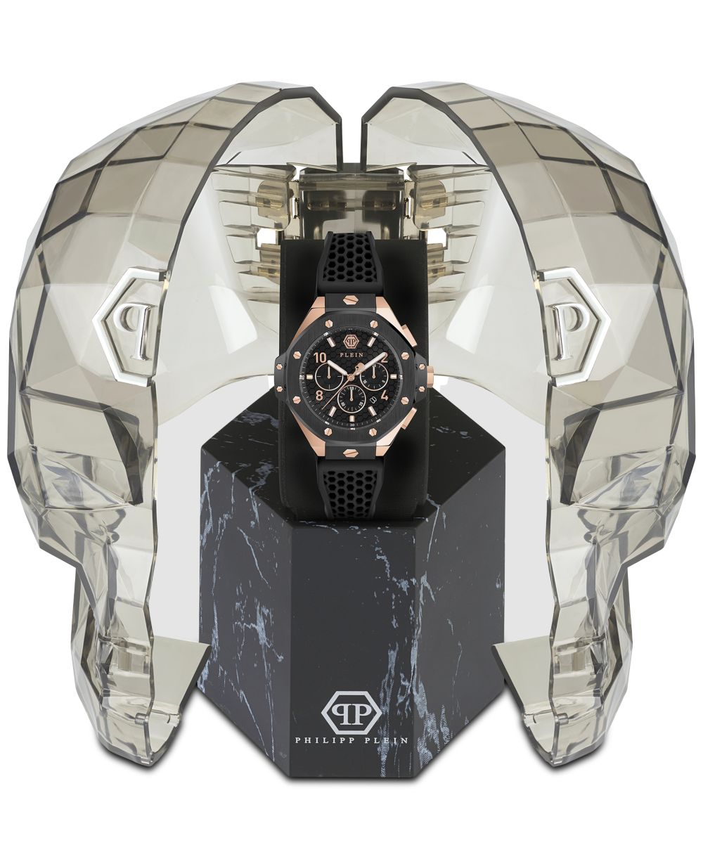 Philipp Plein Mens Chronograph Black Silicone Strap Watch 46mm