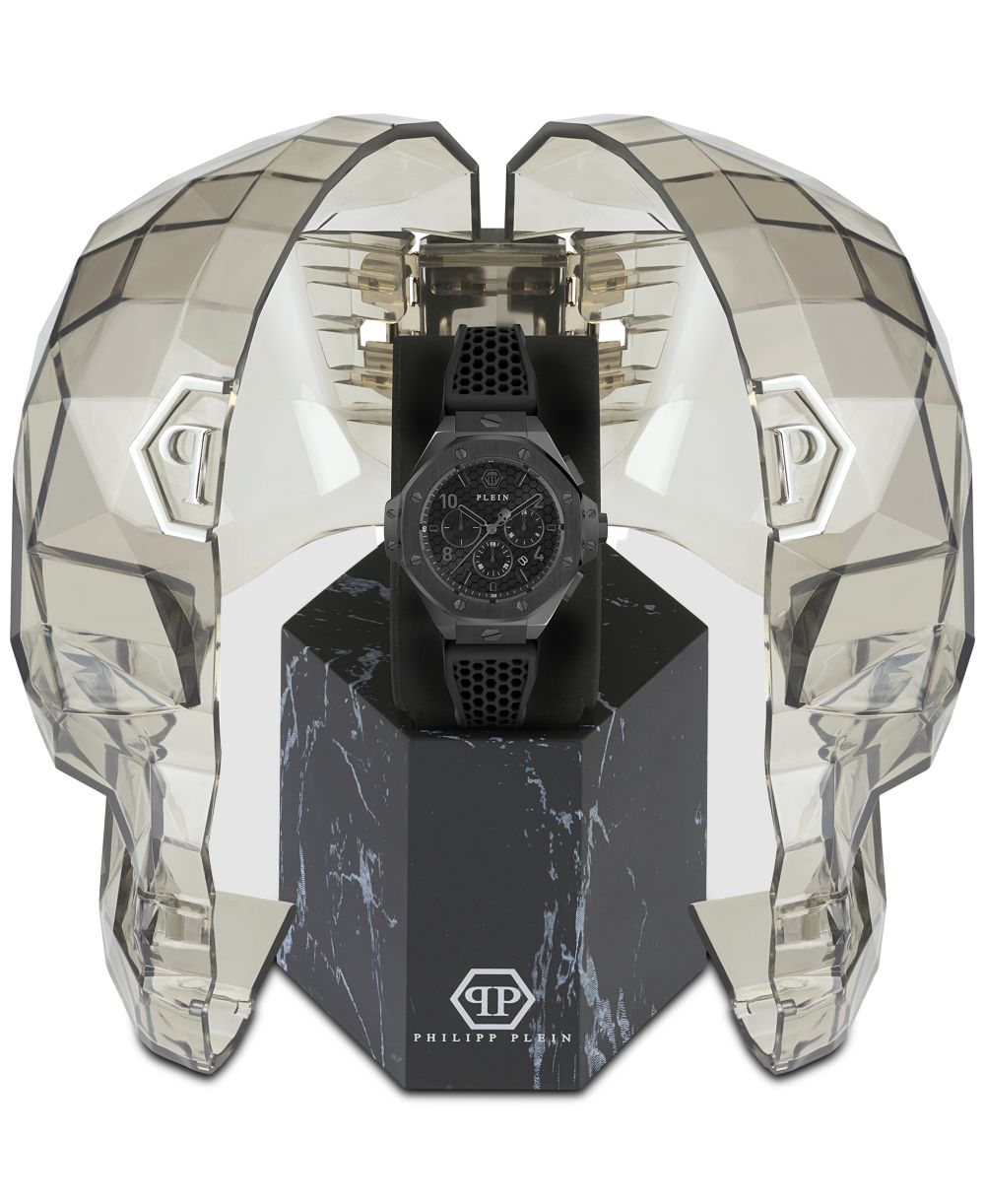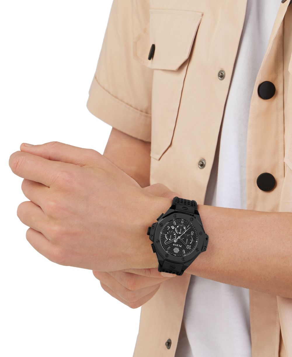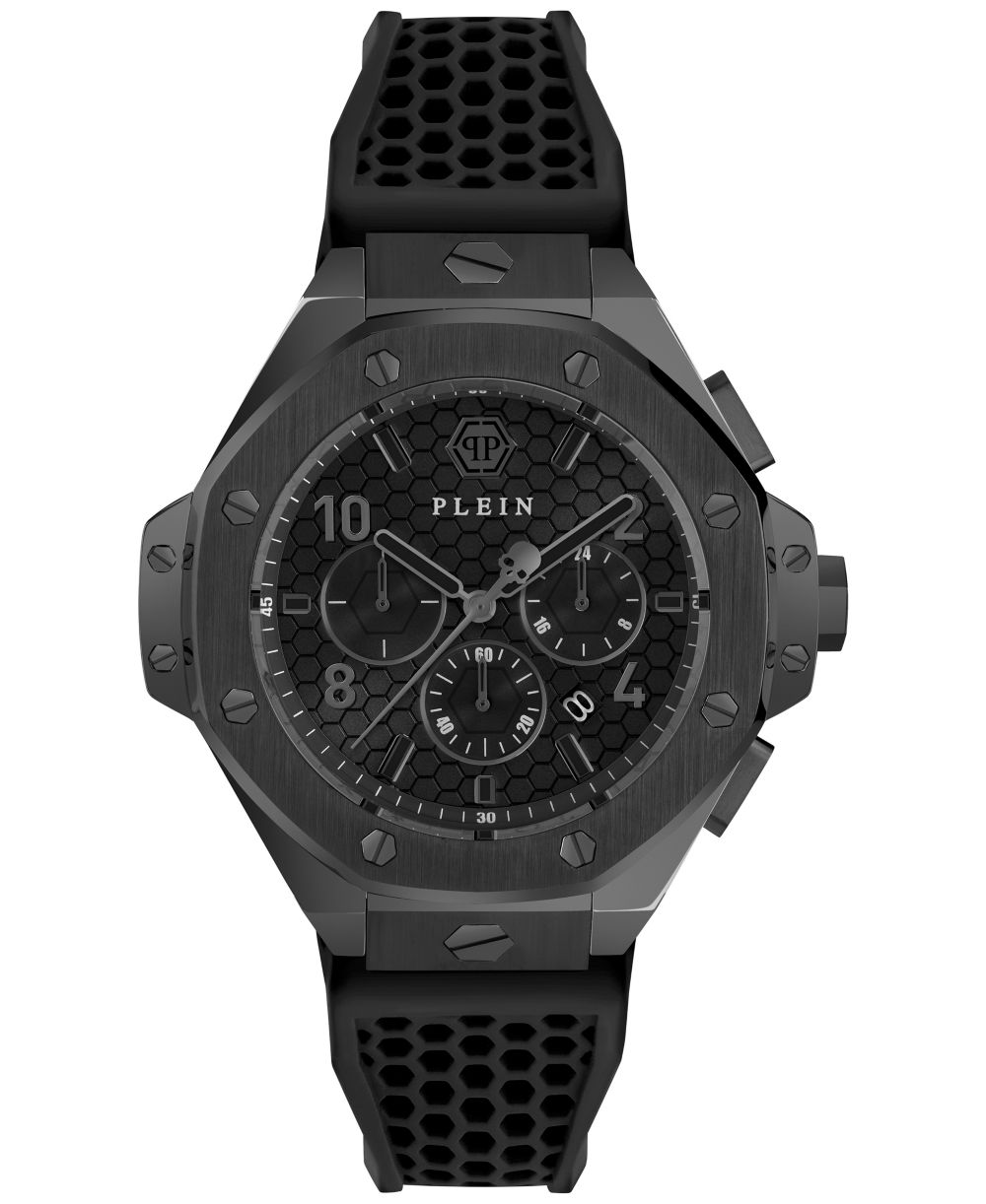 Philipp Plein Mens Chronograph Black Silicone Strap Watch 46mm