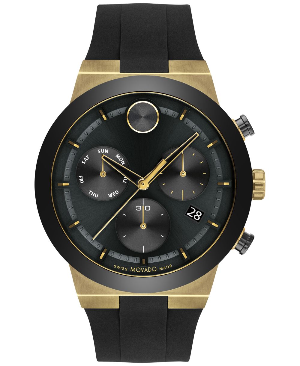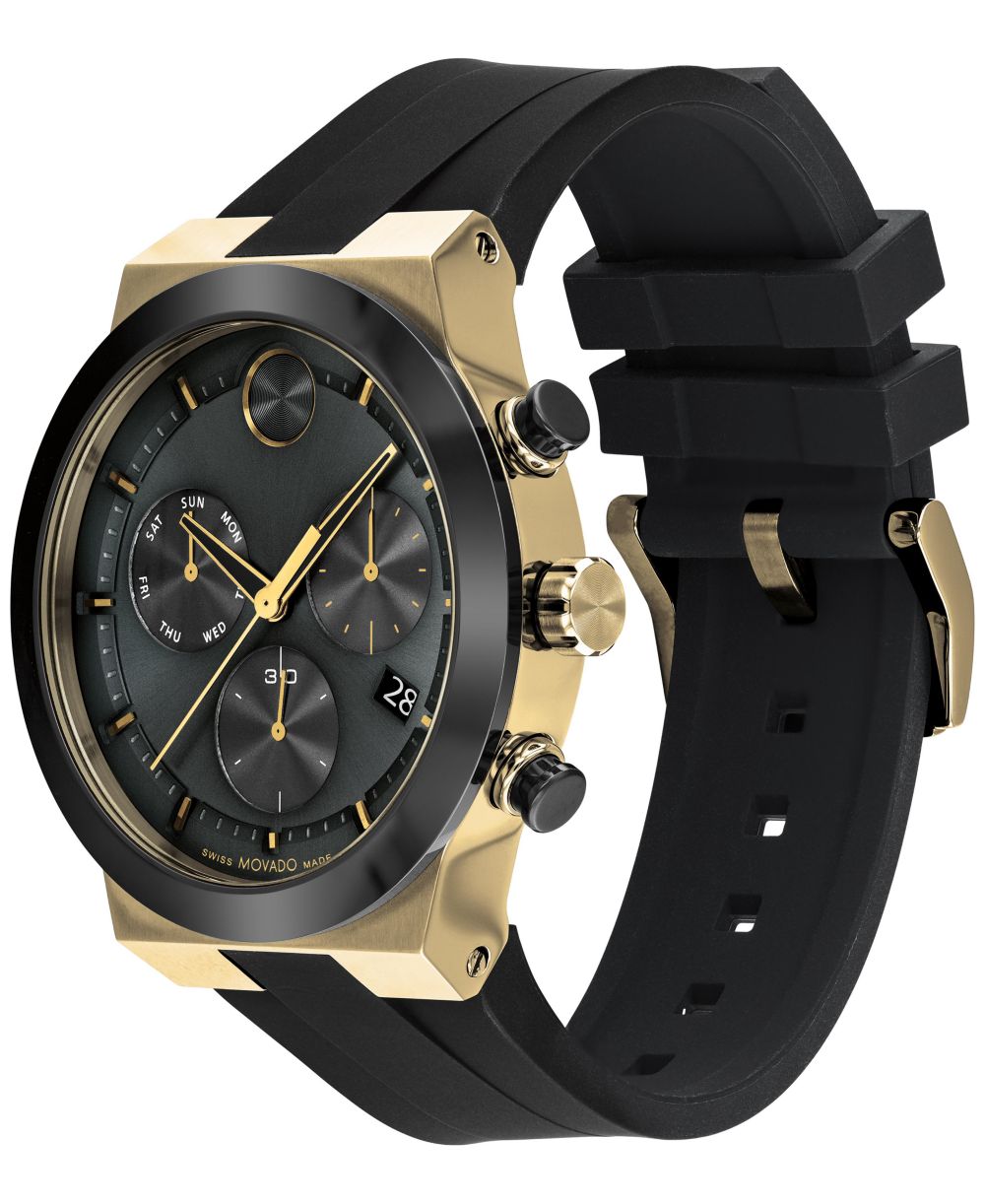Movado Mens Swiss Chronograph Bold Fusion Black Silicone Strap Watch 45mm