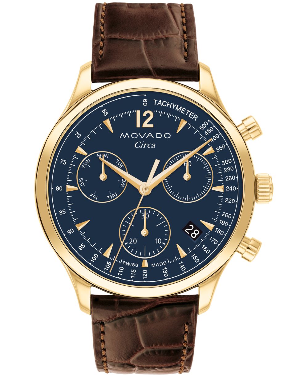 Movado Mens Circa Swiss Quartz Chrono Brown Leather Watch 43mm