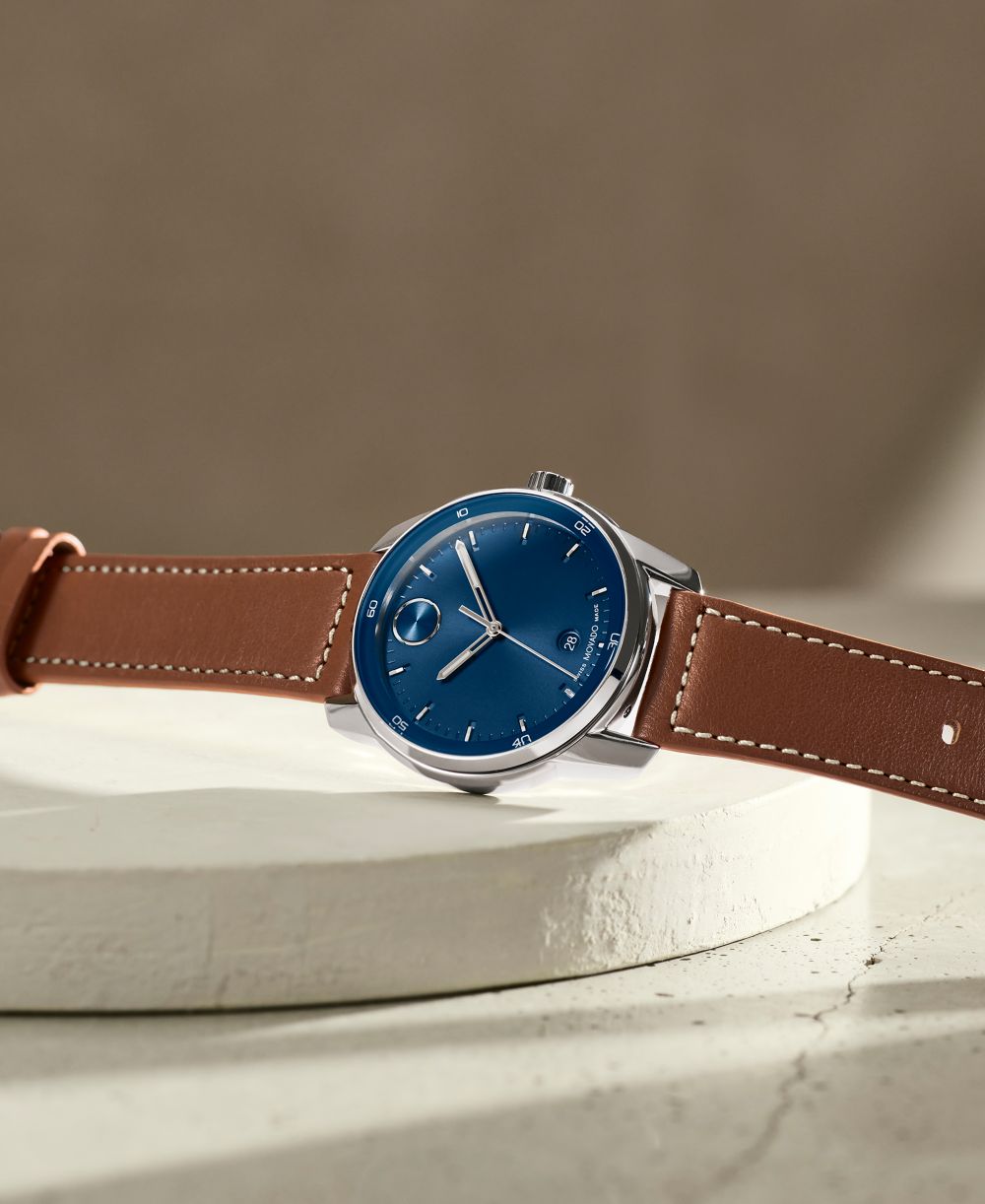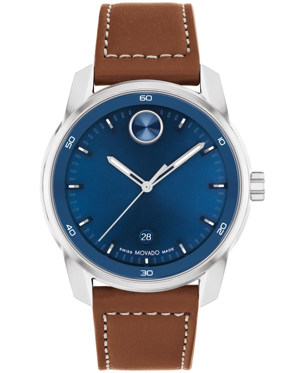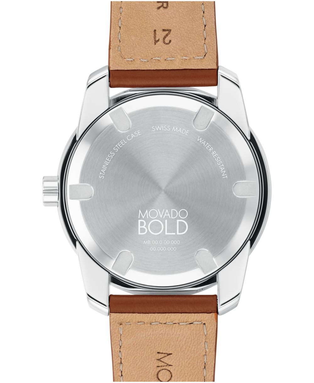 Movado Mens Bold Verso Swiss Quartz Cognac Leather Strap Watch 42mm