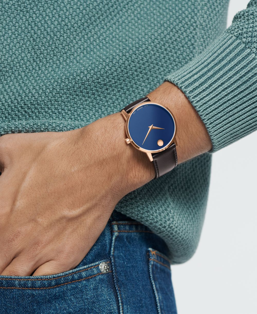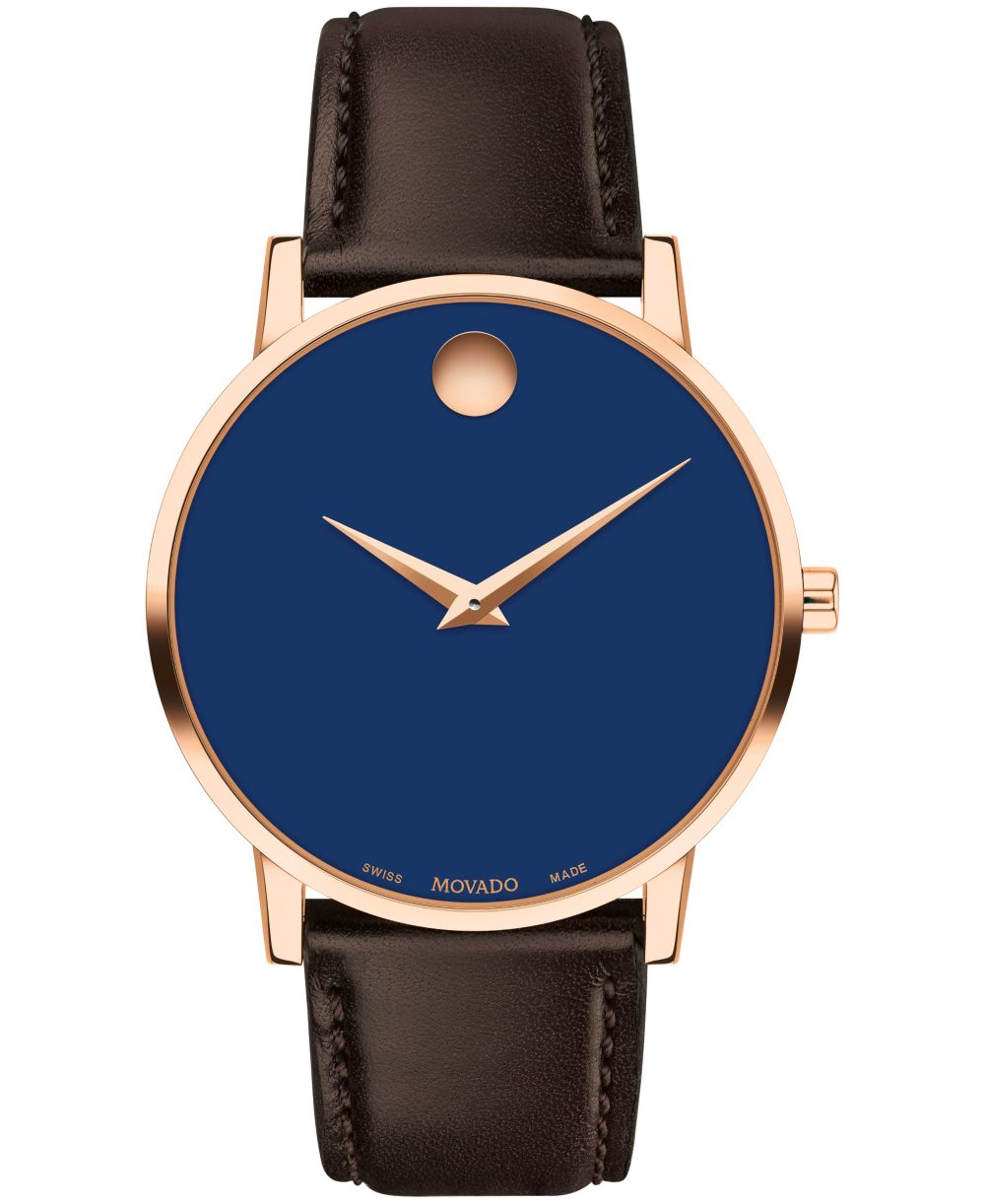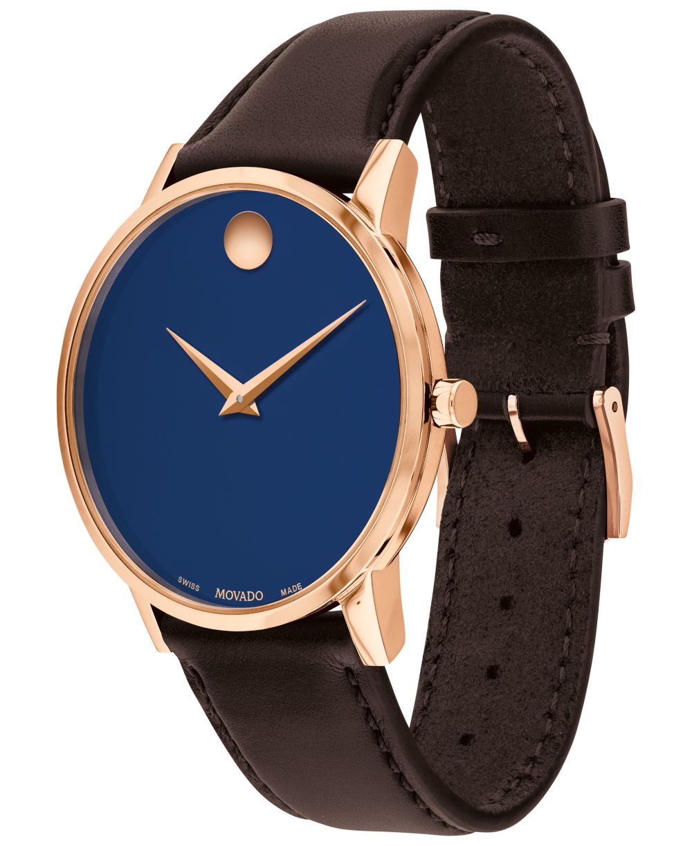 Movado Mens Museum Classic Swiss Quartz Brown Genuine Leather Strap Watch 40mm