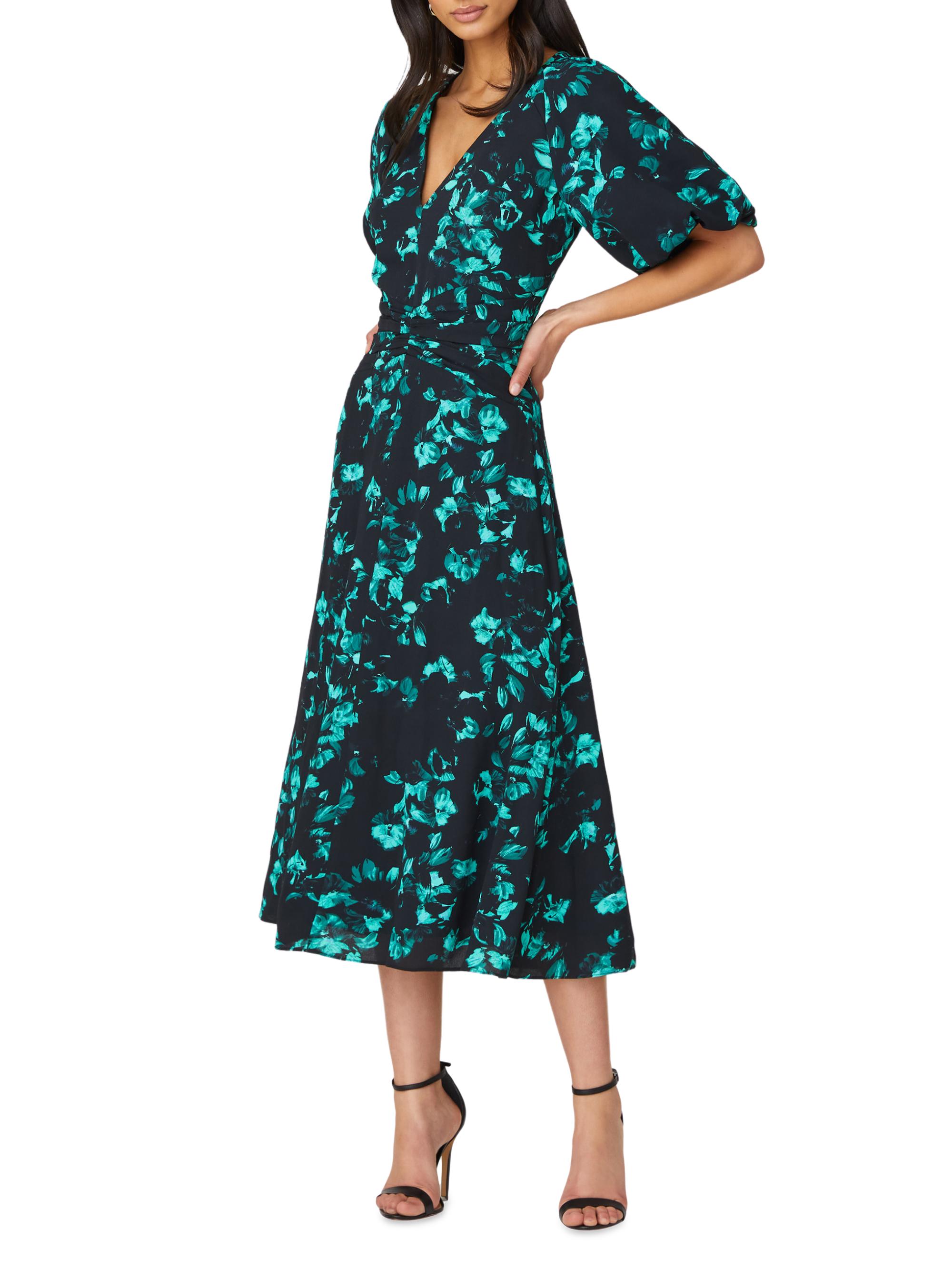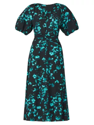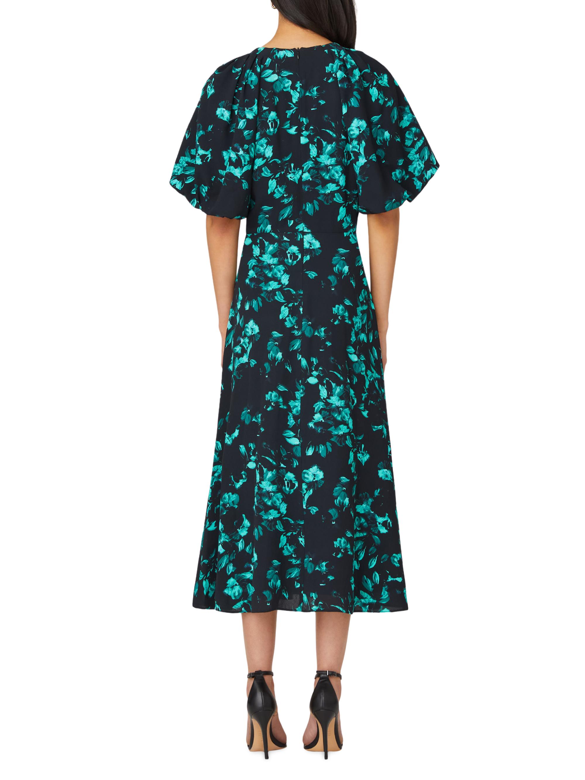 Shoshanna Nala Floral Puff-Sleeve Midi-Dress