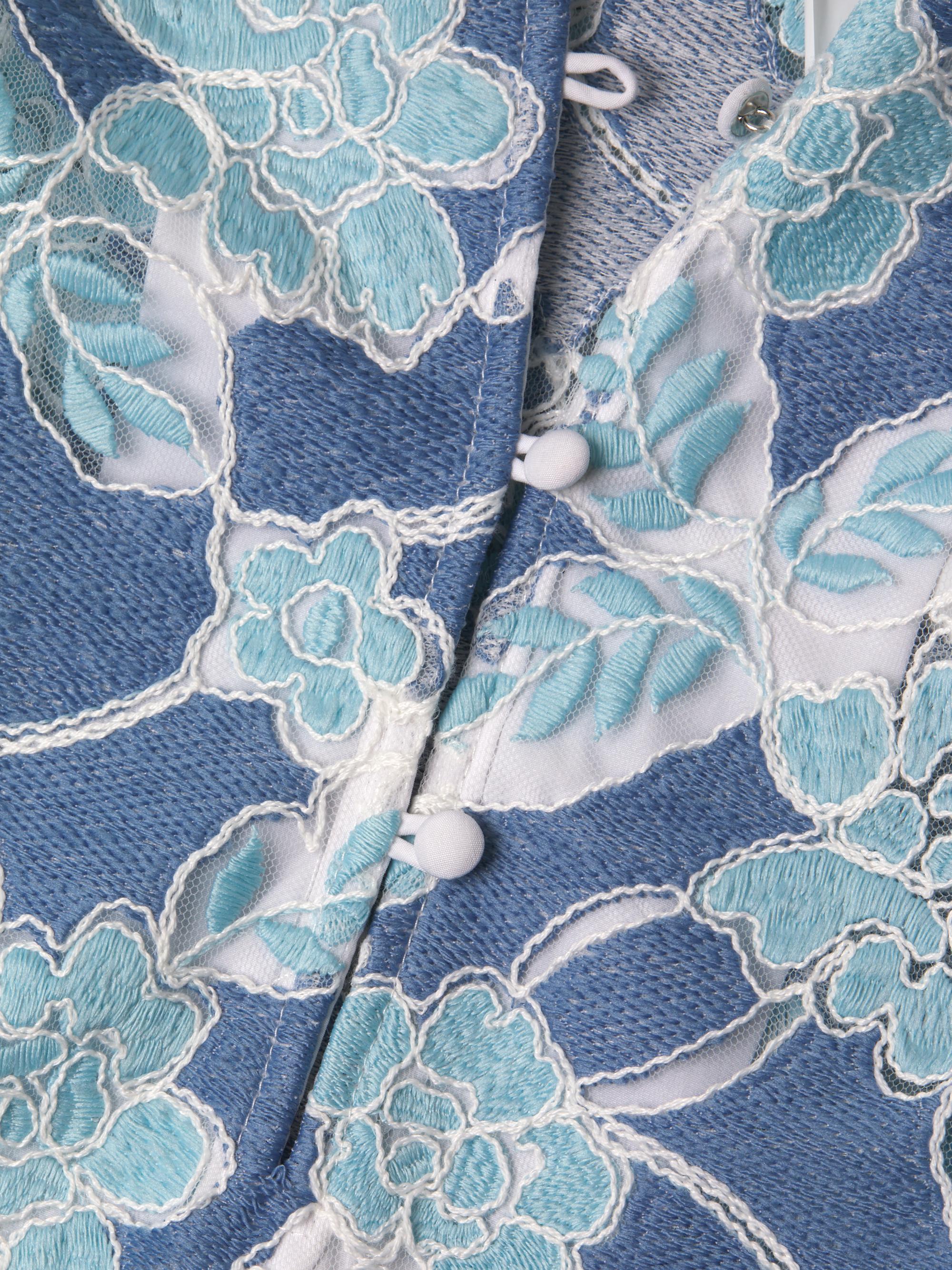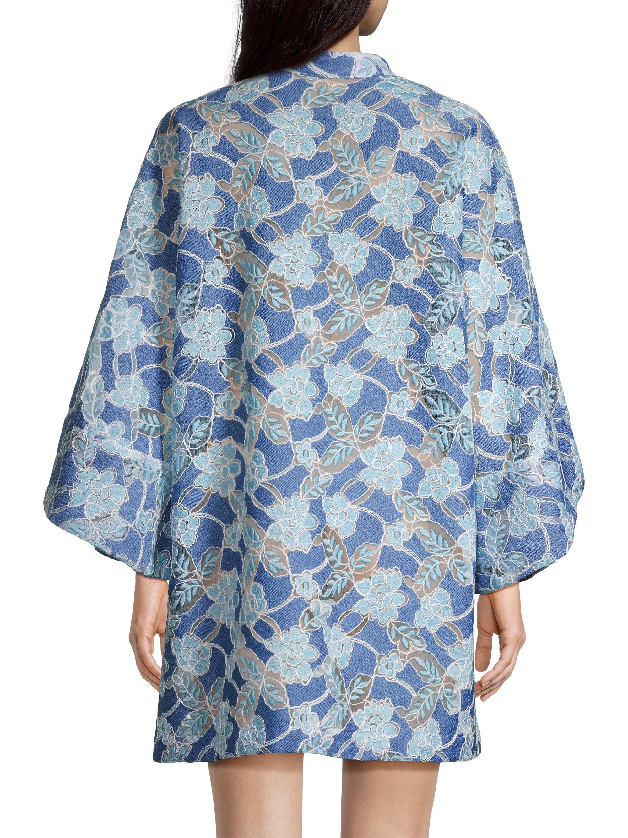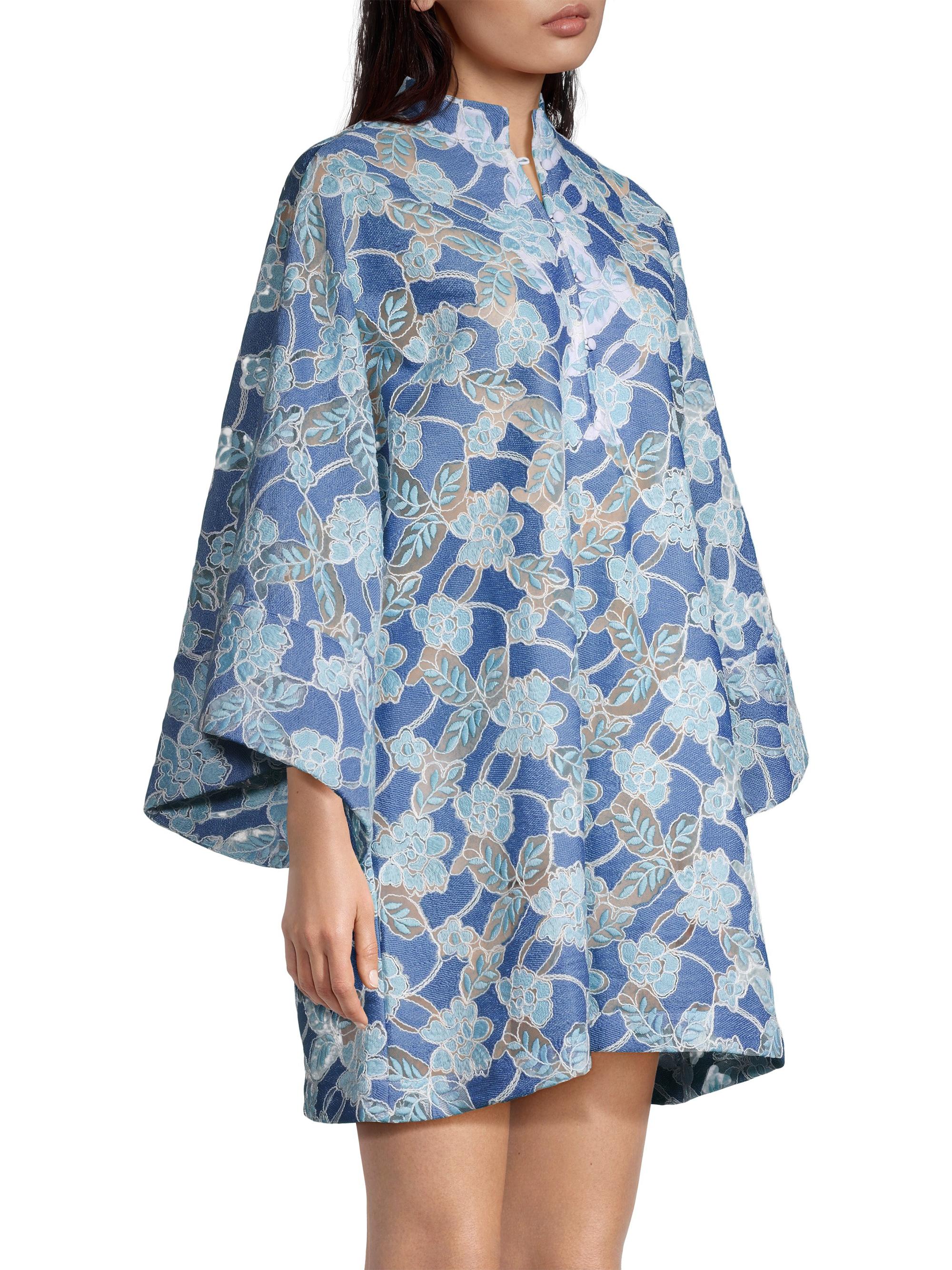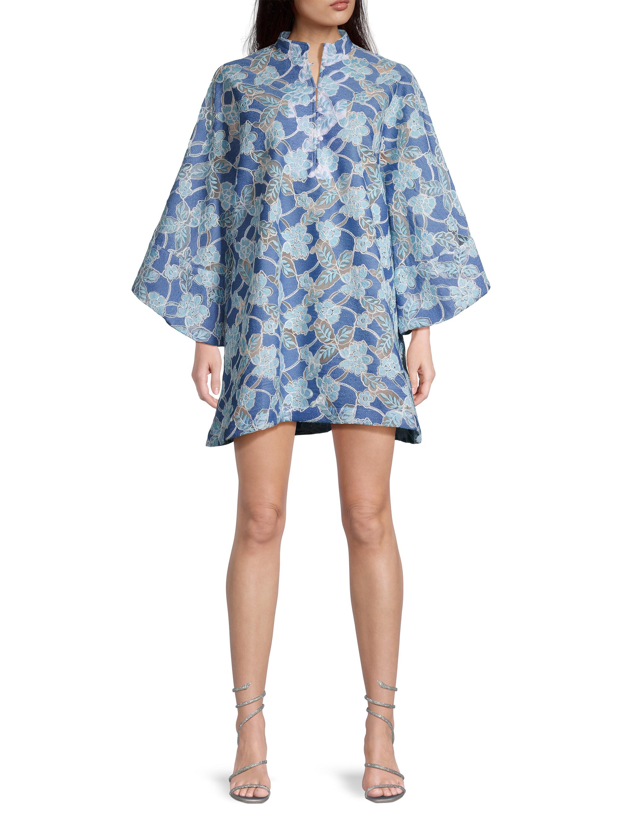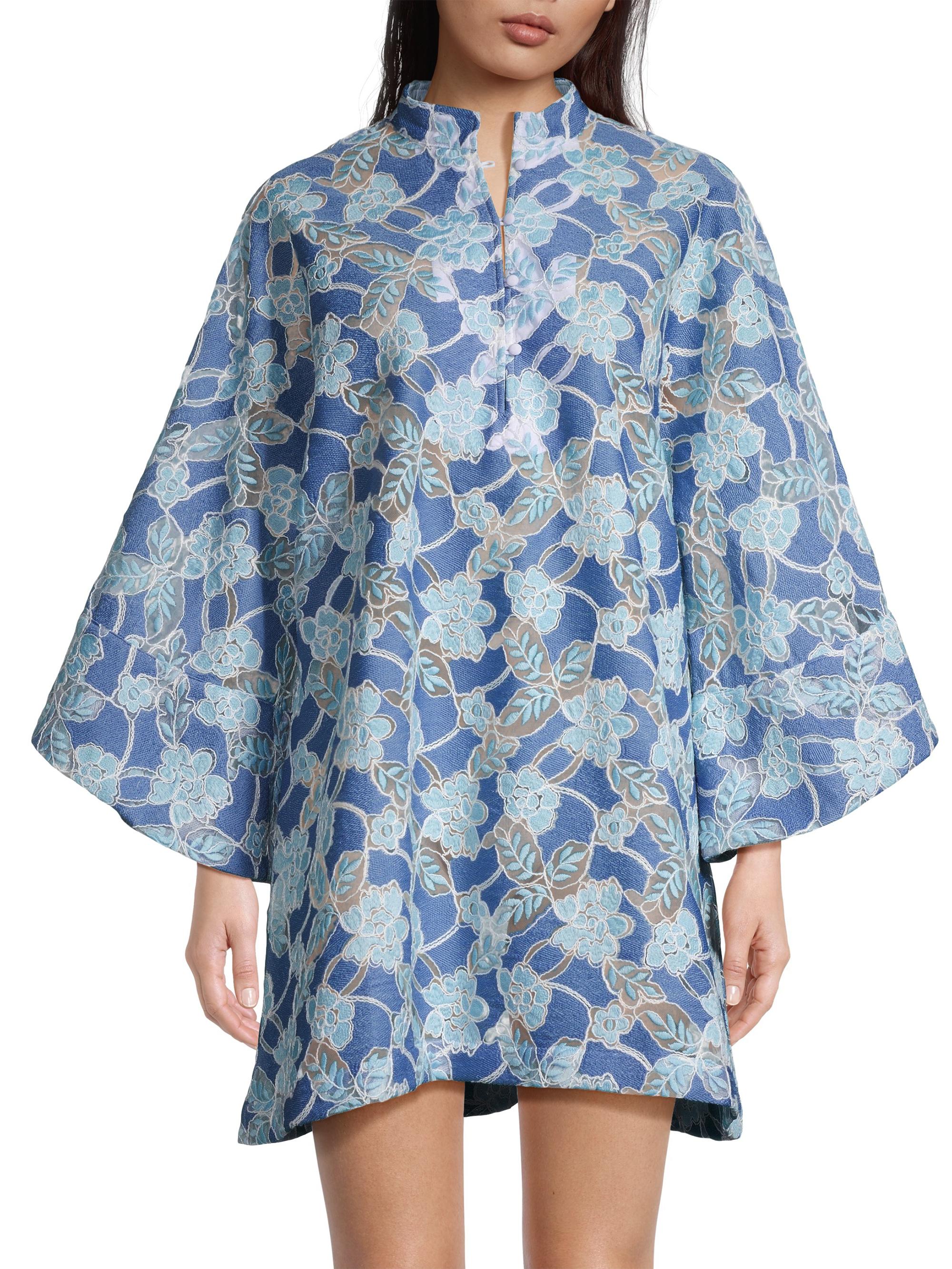 La Vie Style House Floral Embroidered Lace Long-Sleeve Mini Caftan