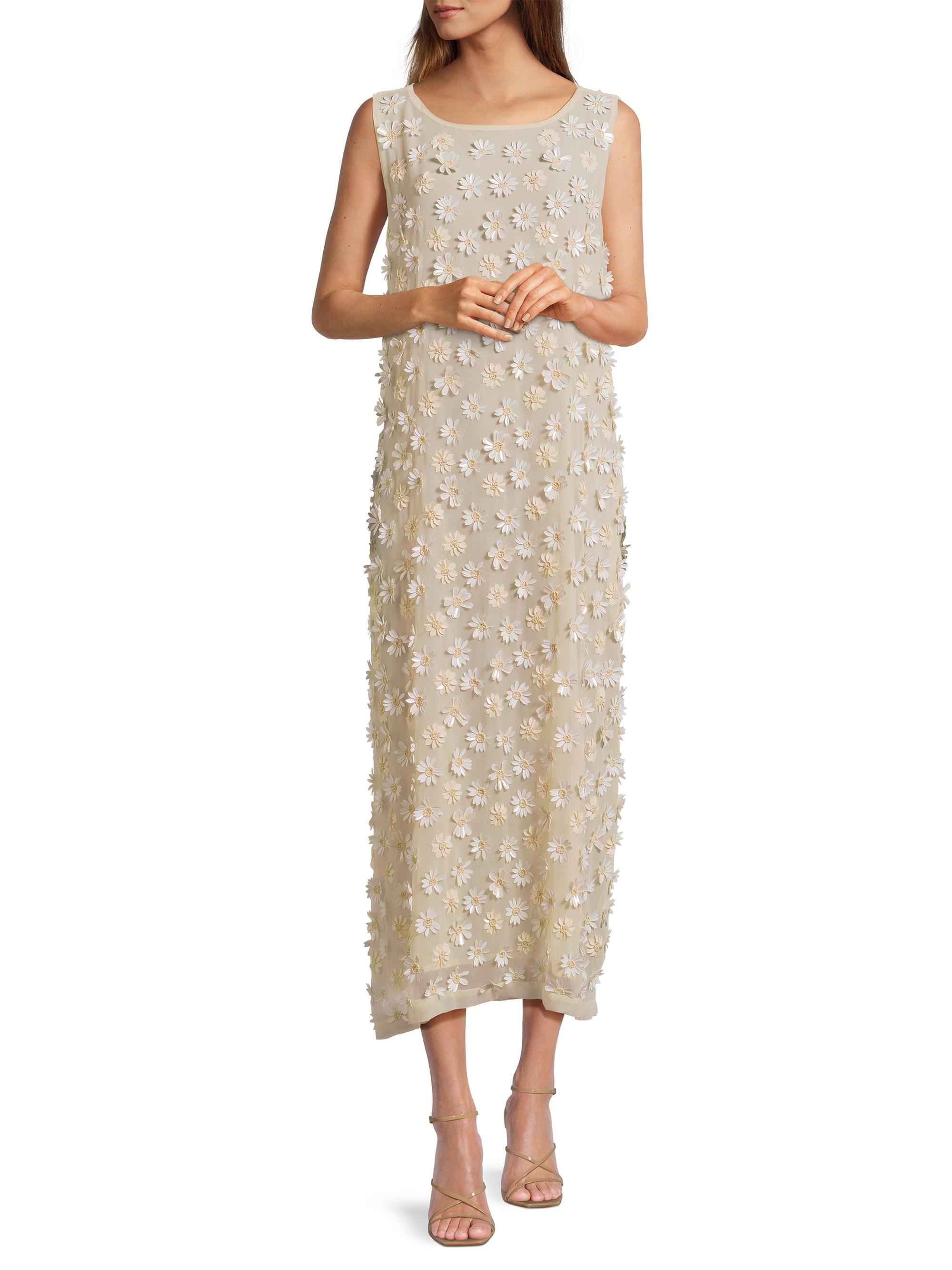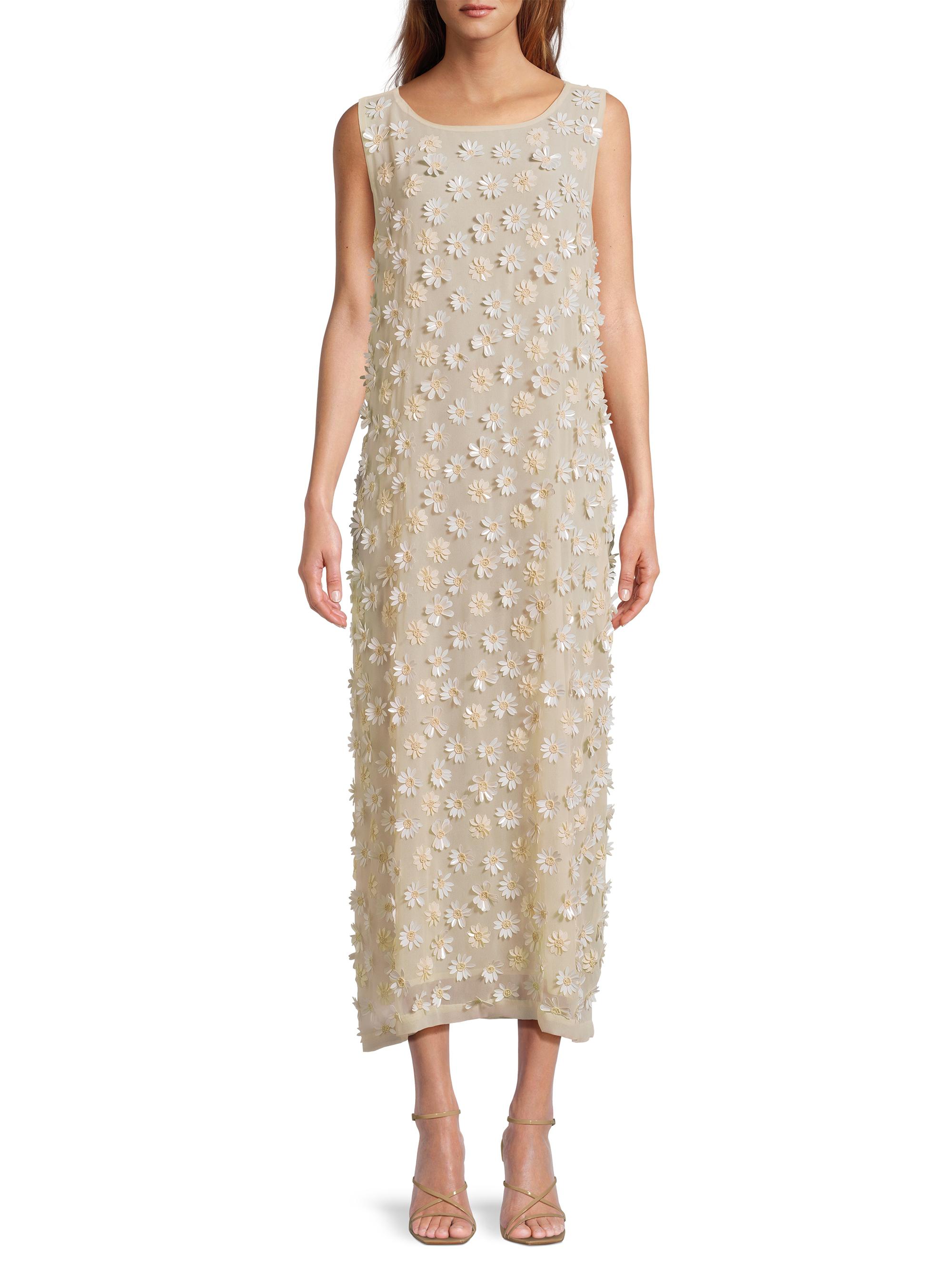La Vie Style House Flower Applique Sleeveless Dress