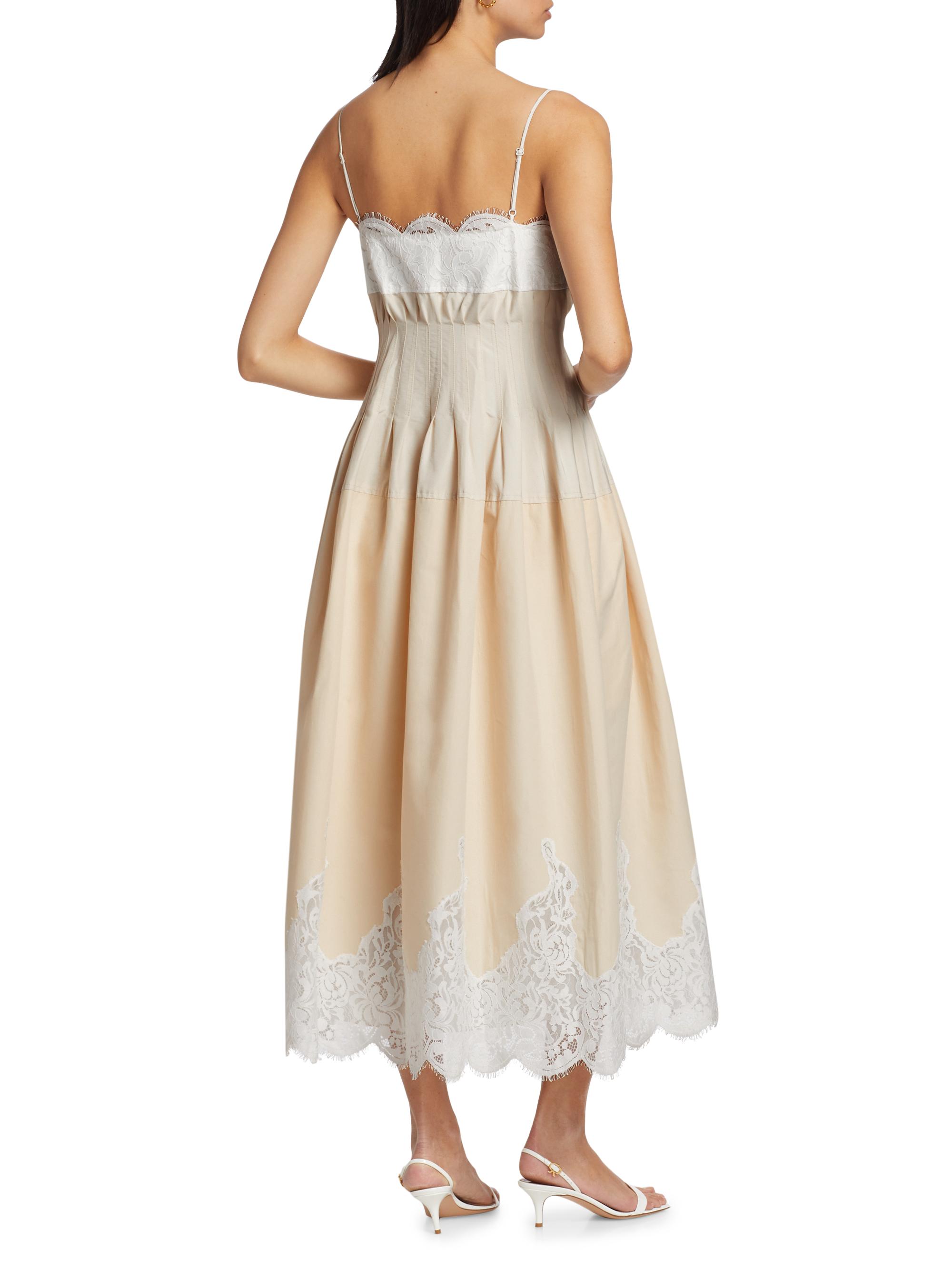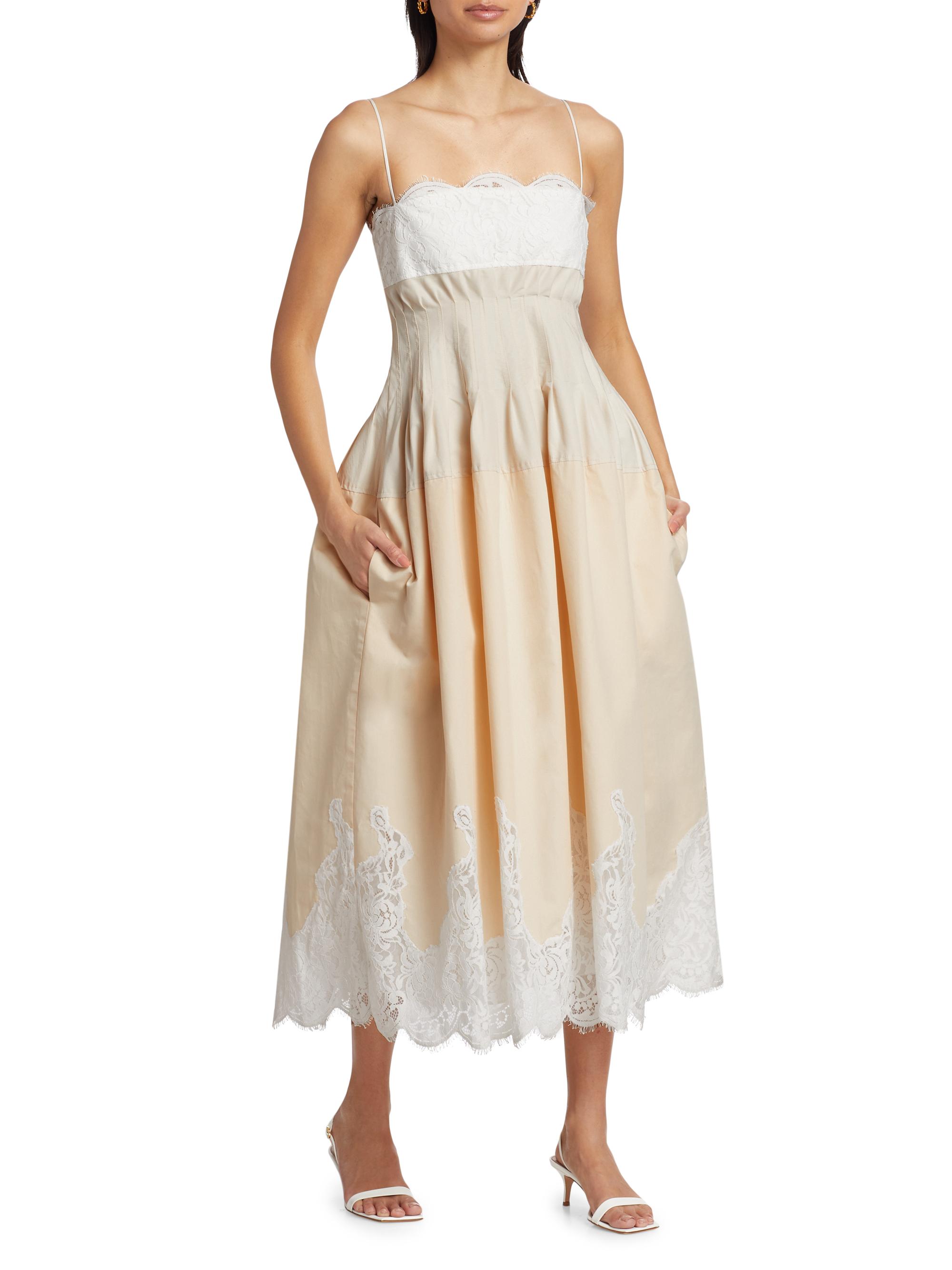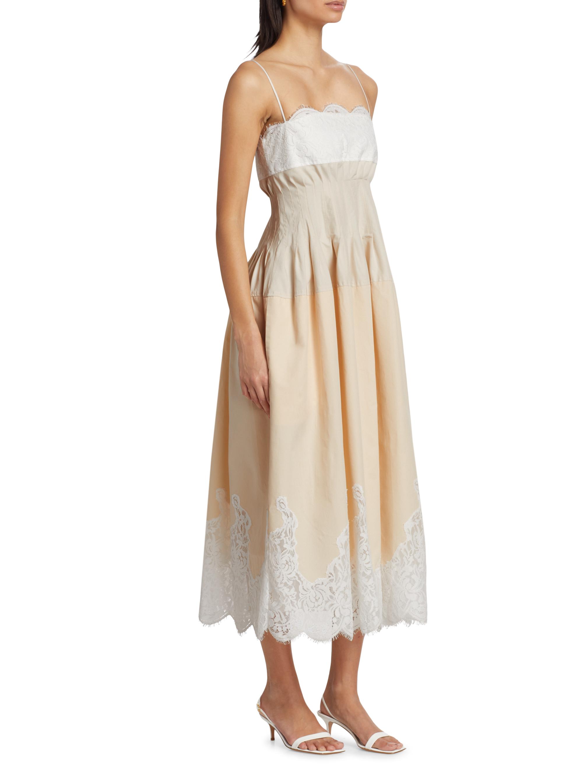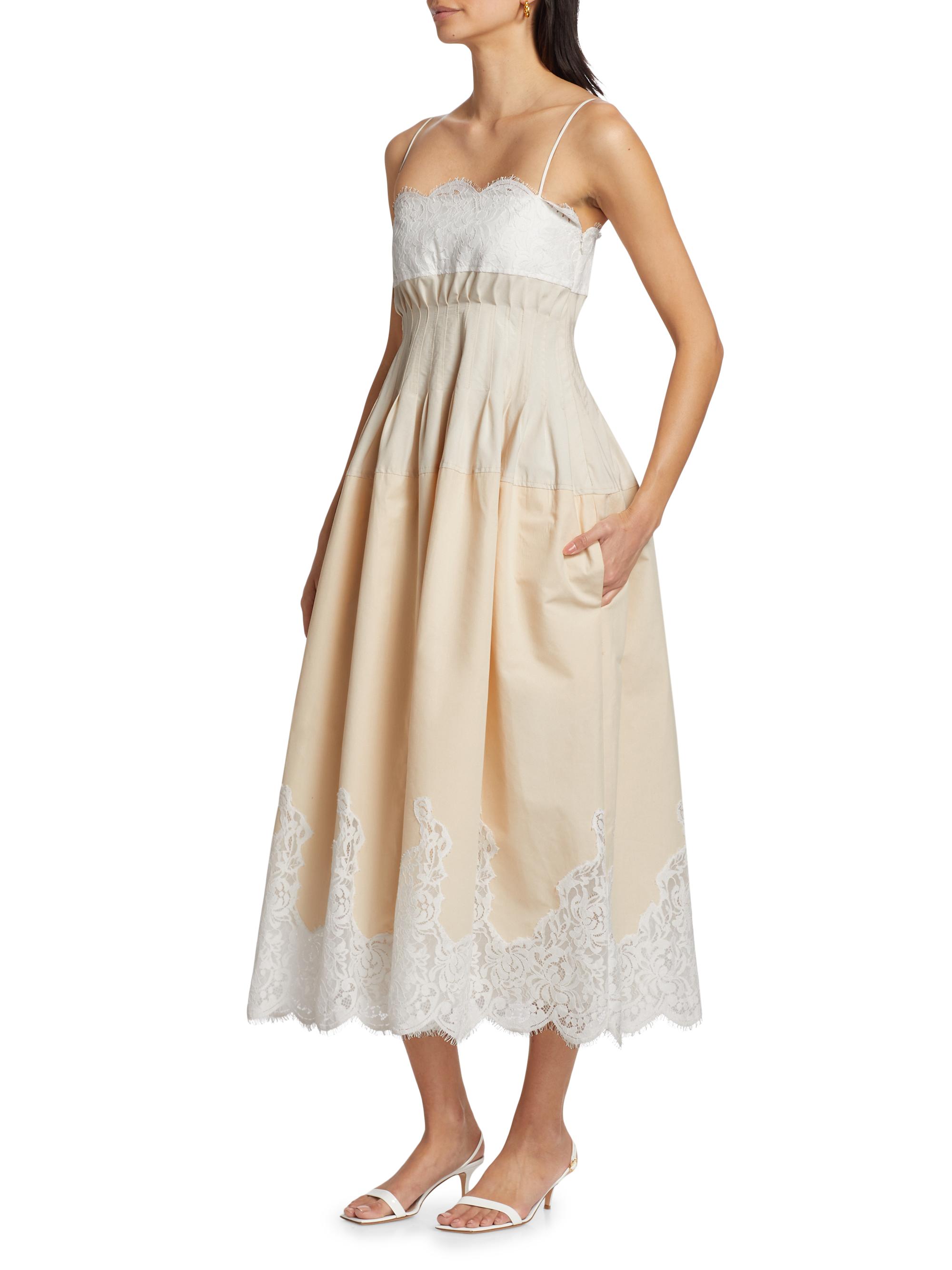 SIMKHAI Lilianna Poplin Lace Combo Midi-Dress