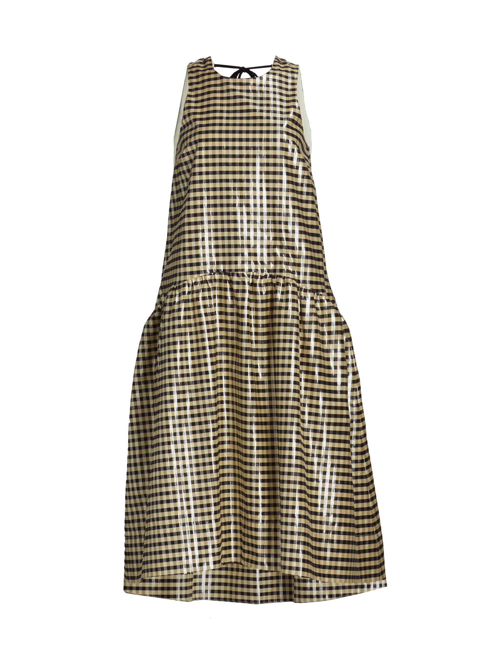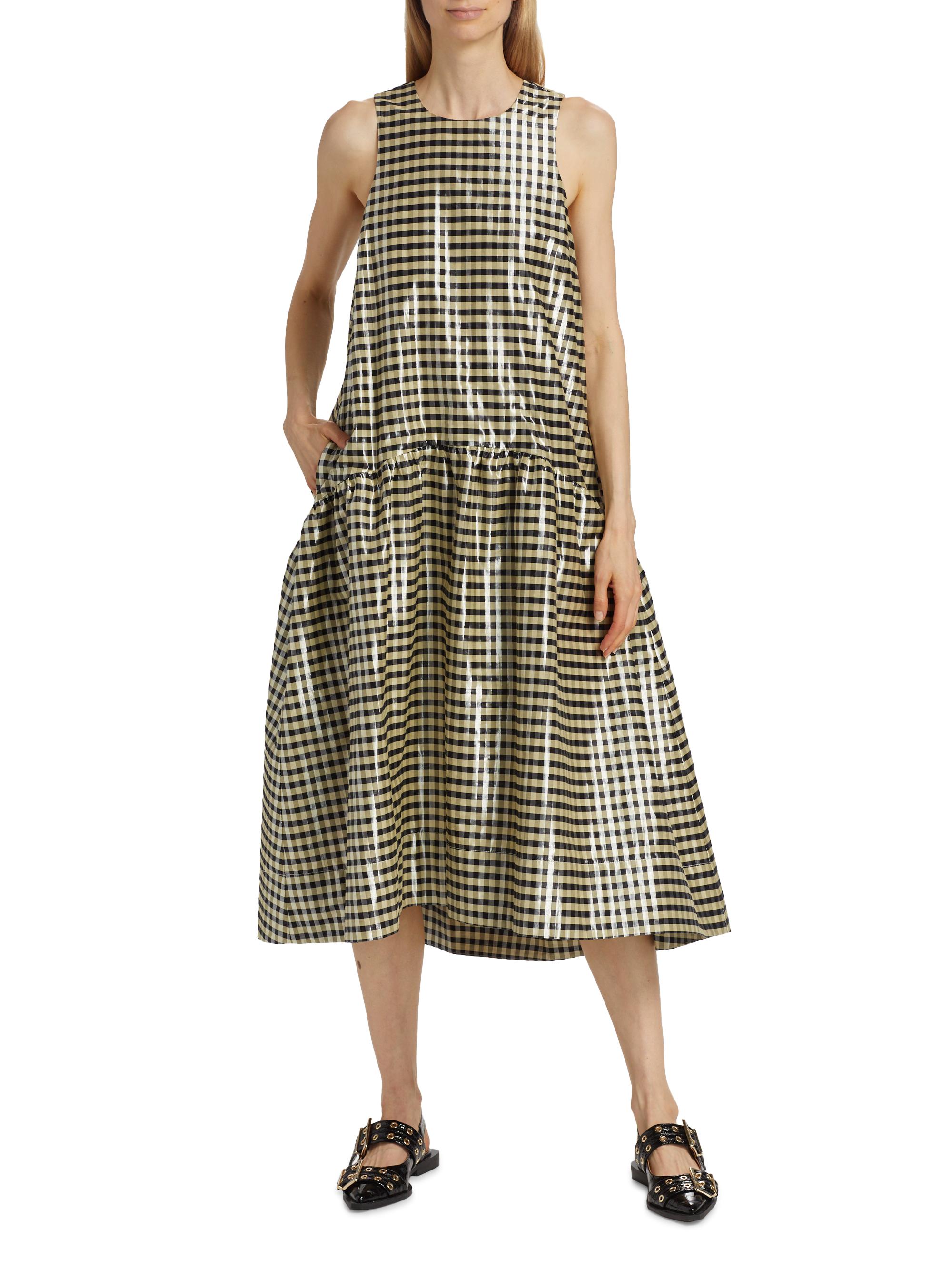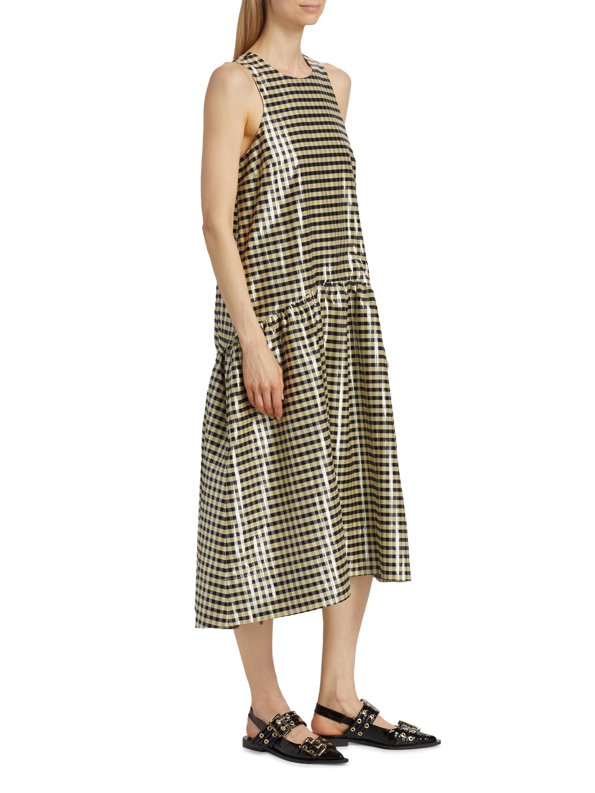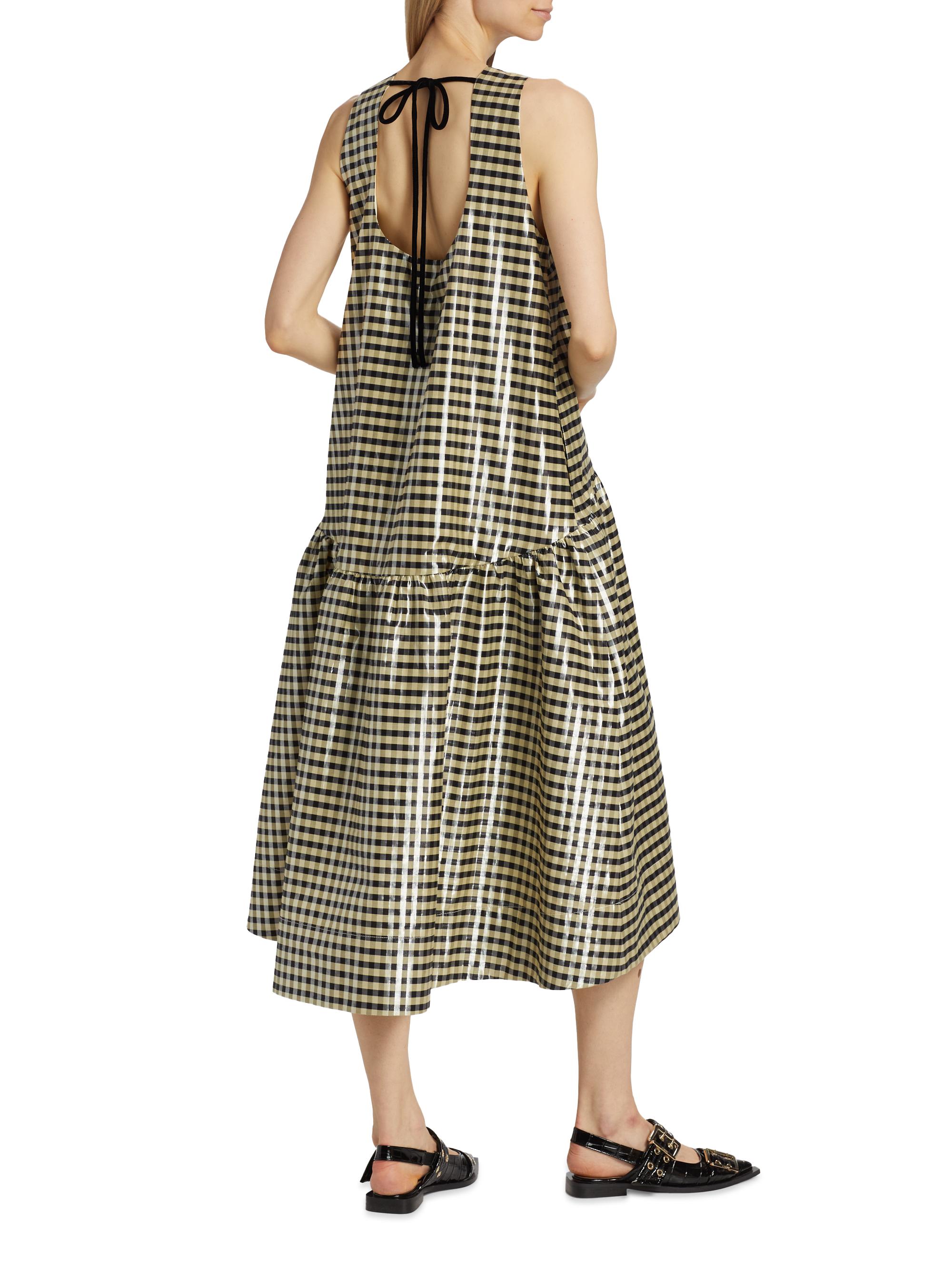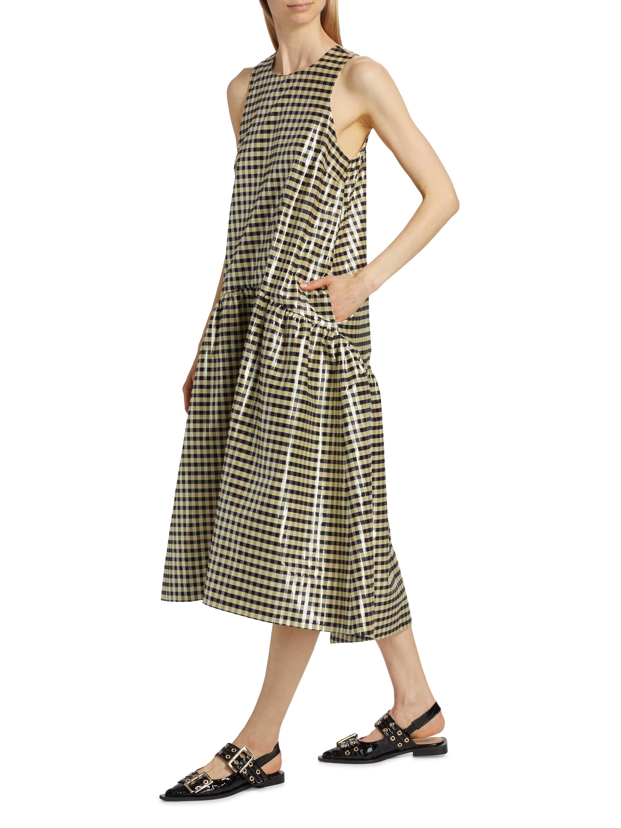 Ganni Plaid Cotton A-Line Midi-Dress