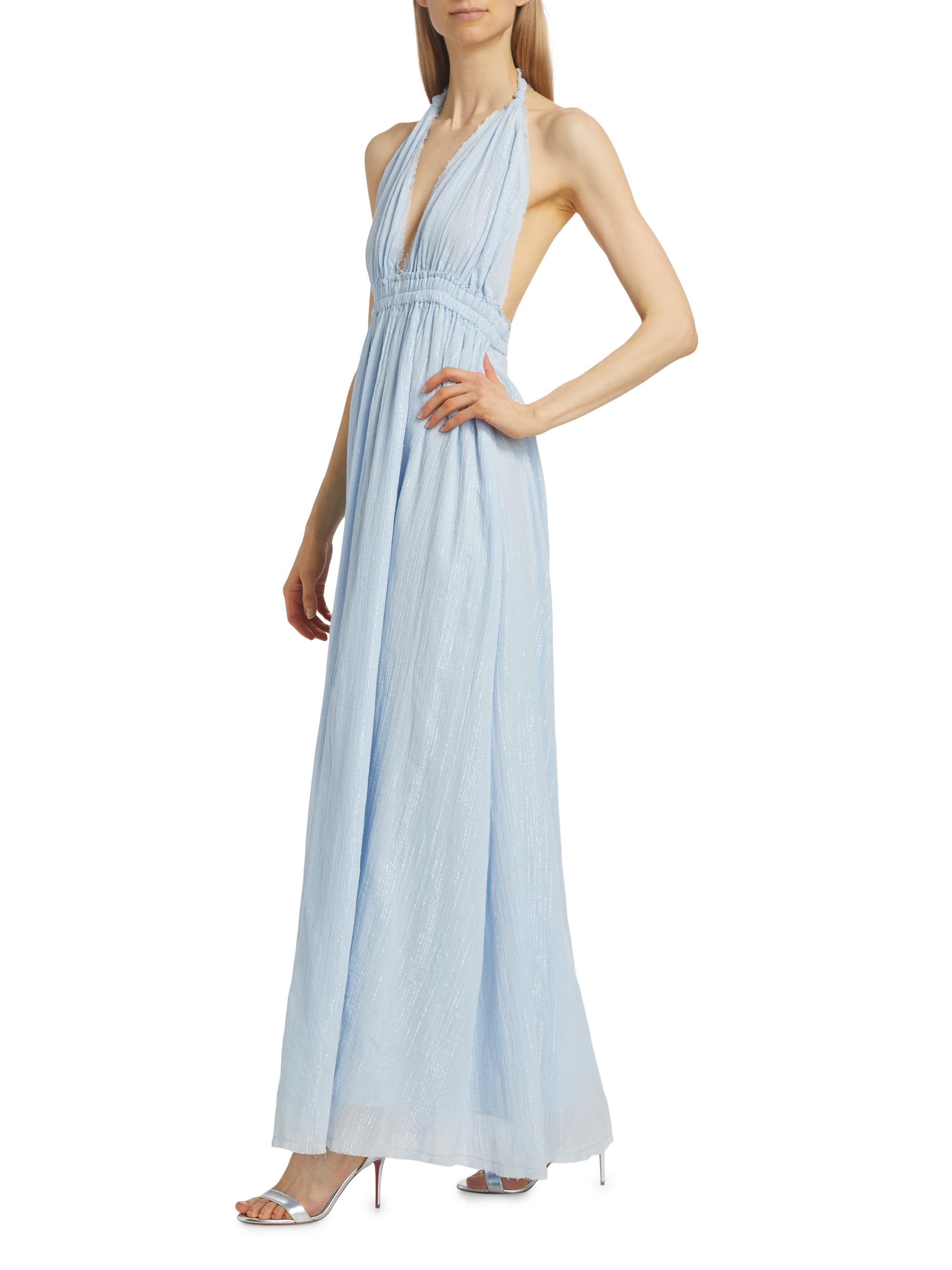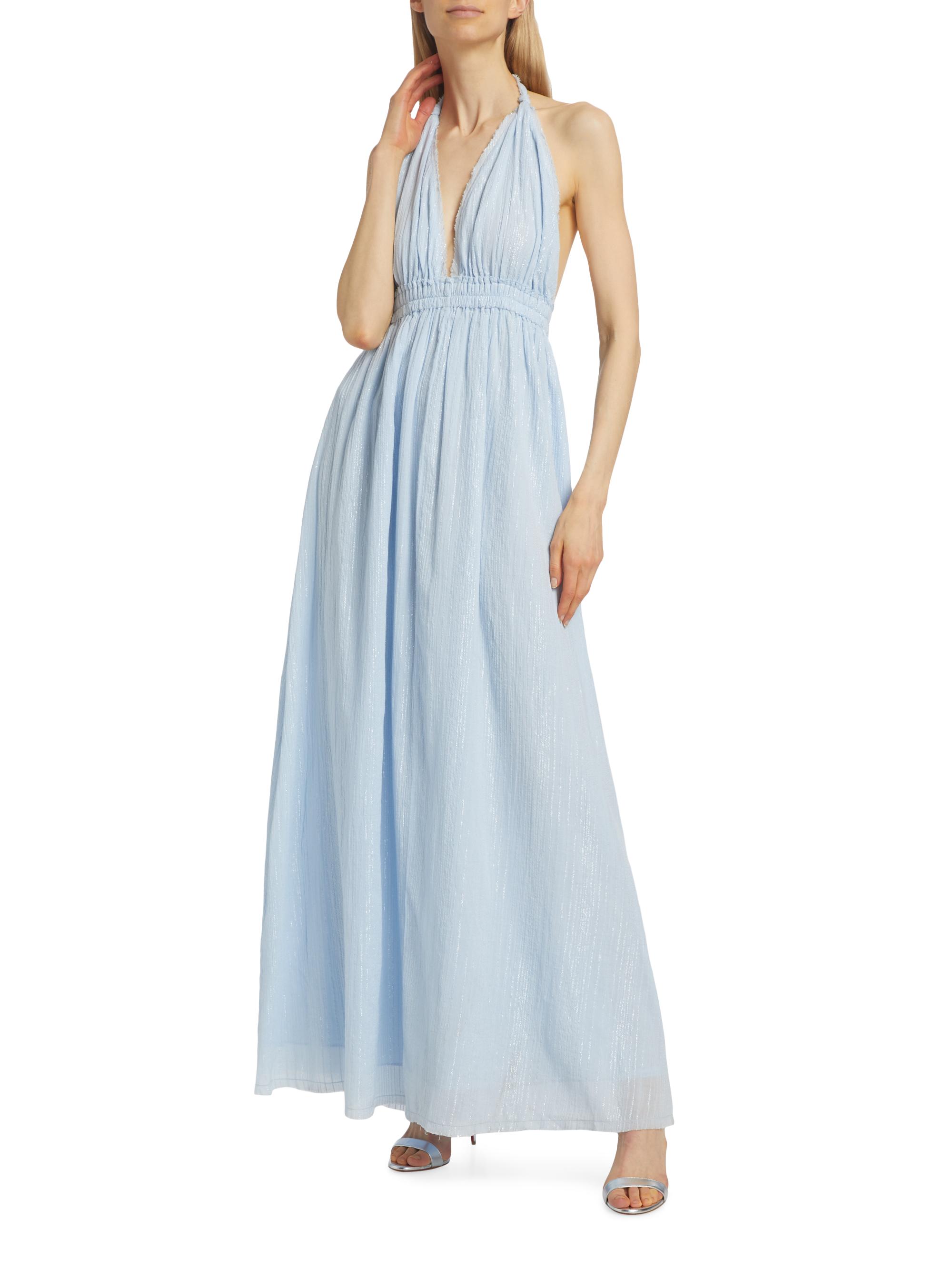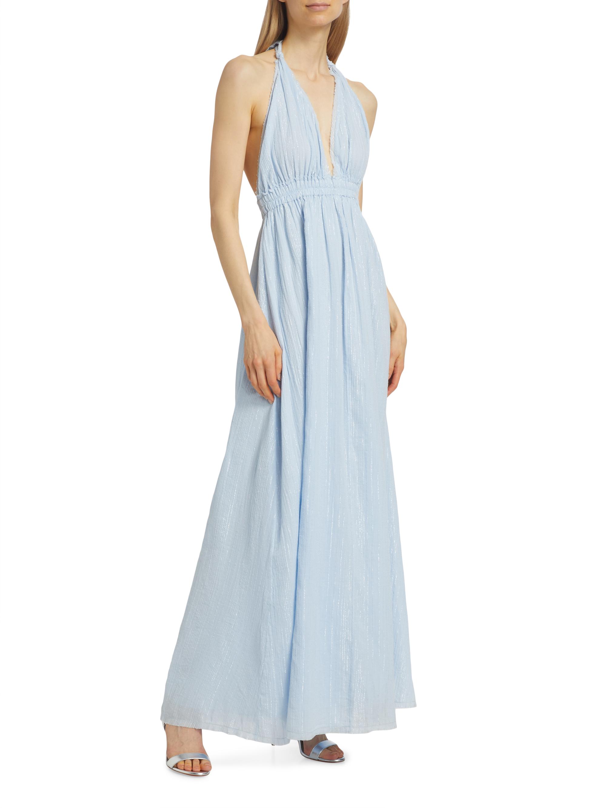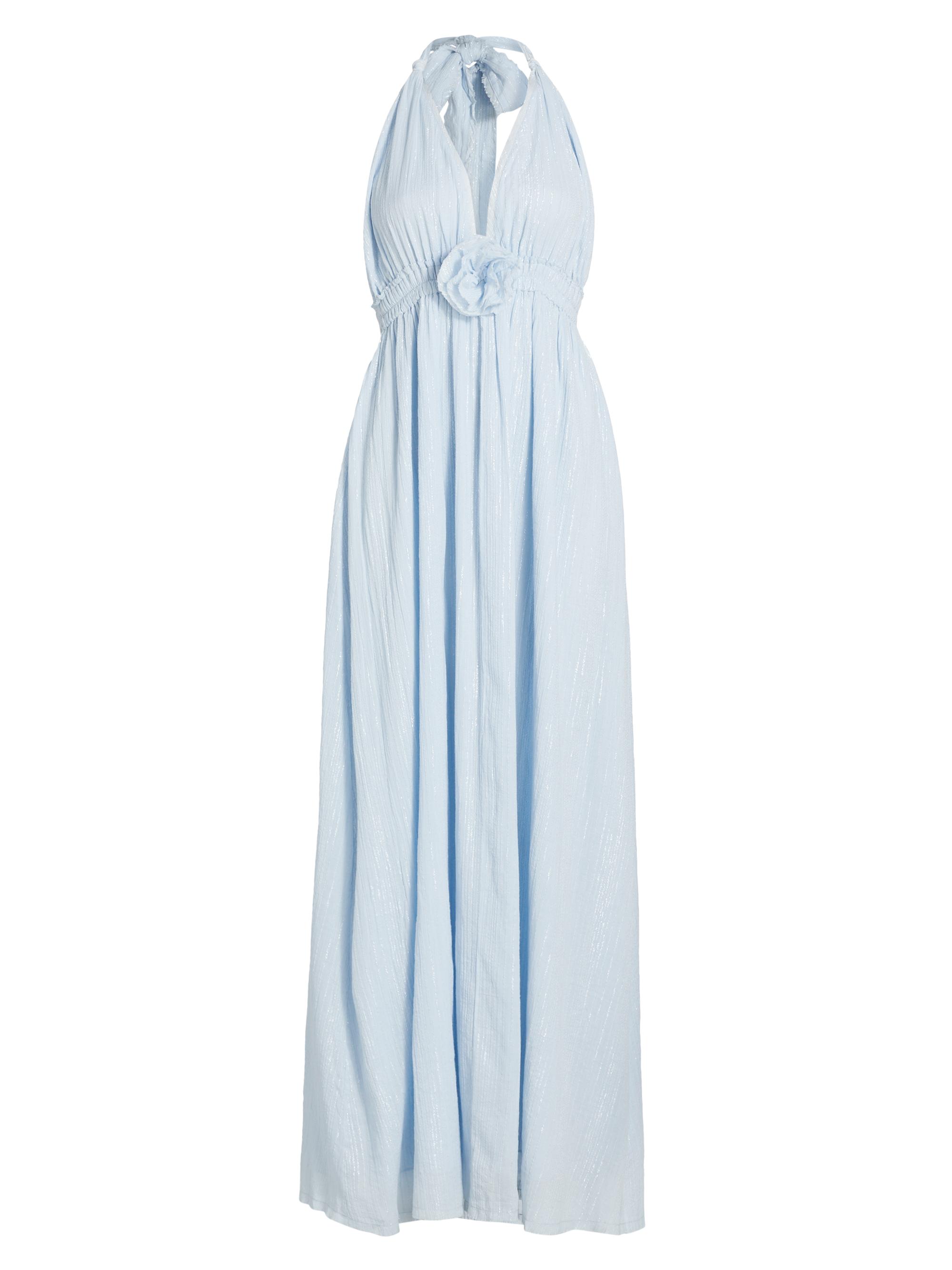 LoveShackFancy Love Metallic Halter Maxi Dress