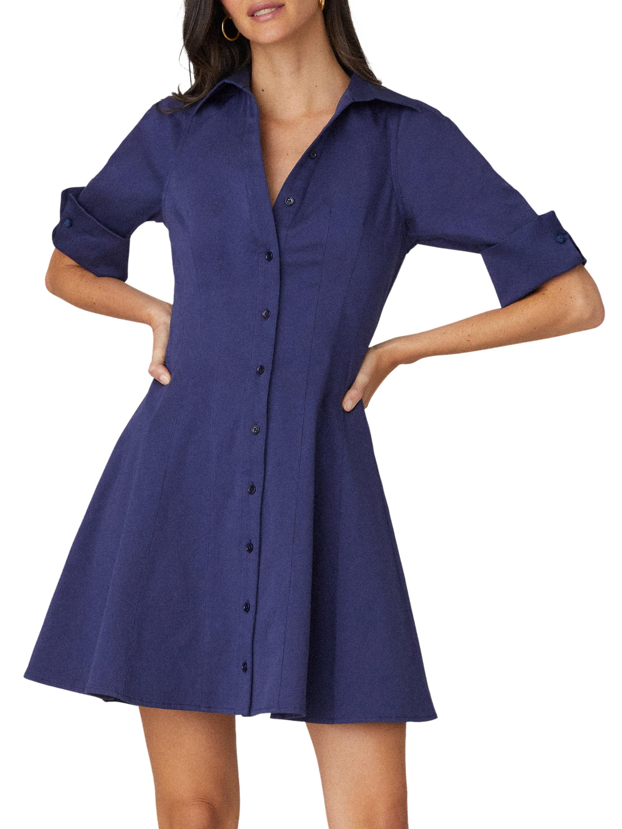 Shoshanna Bryce Cotton Elbow-Sleeve Shirtdress