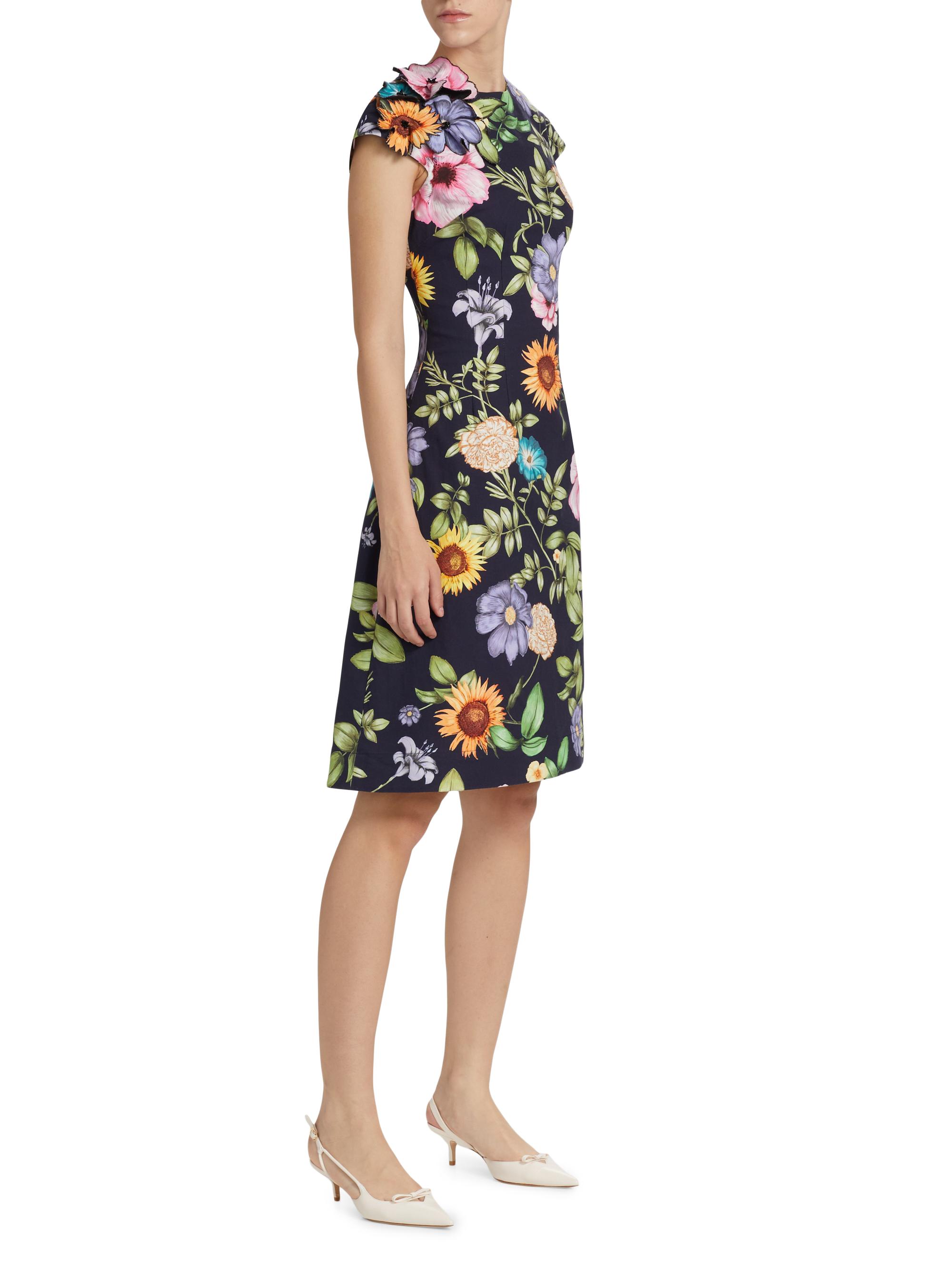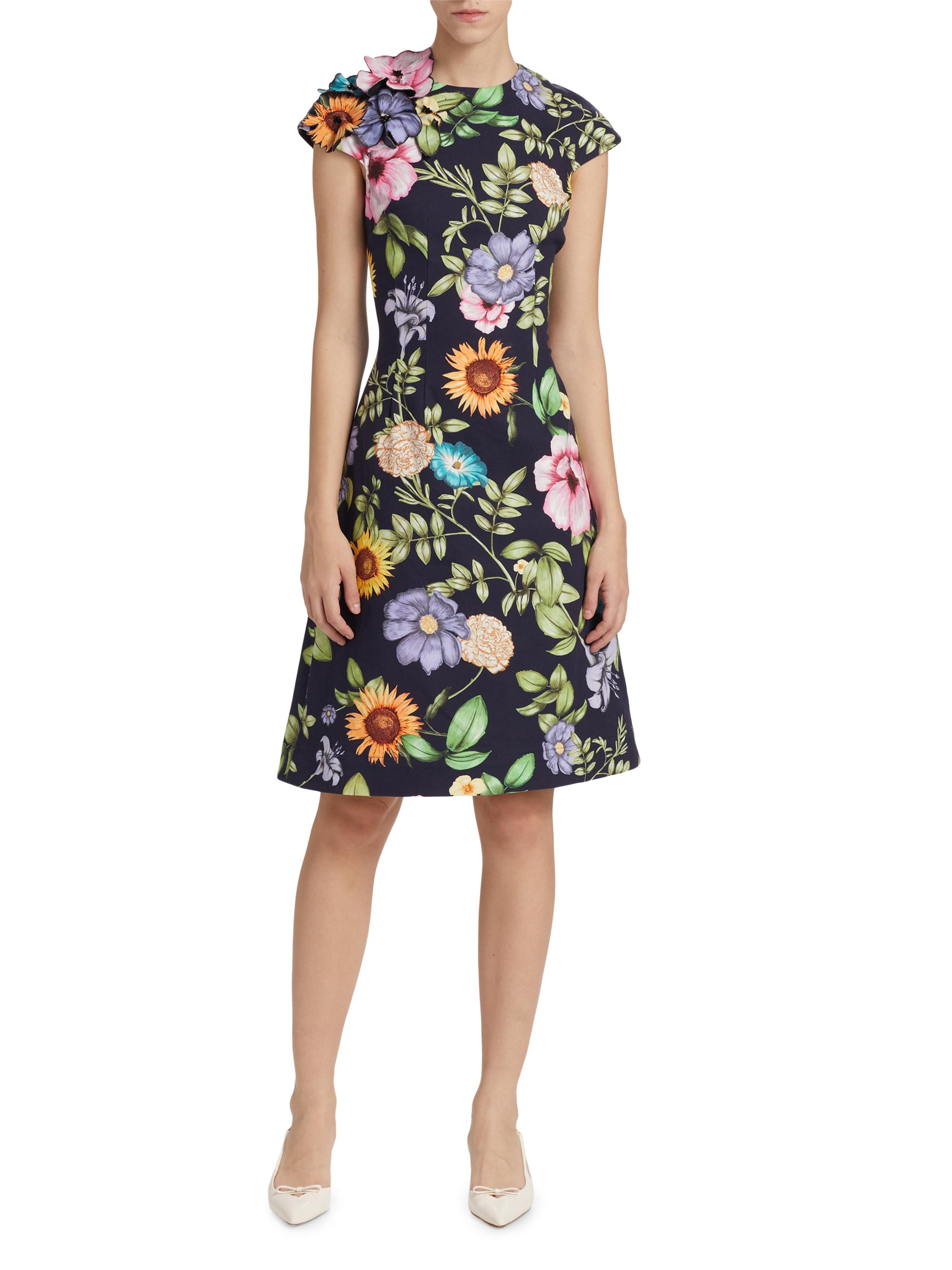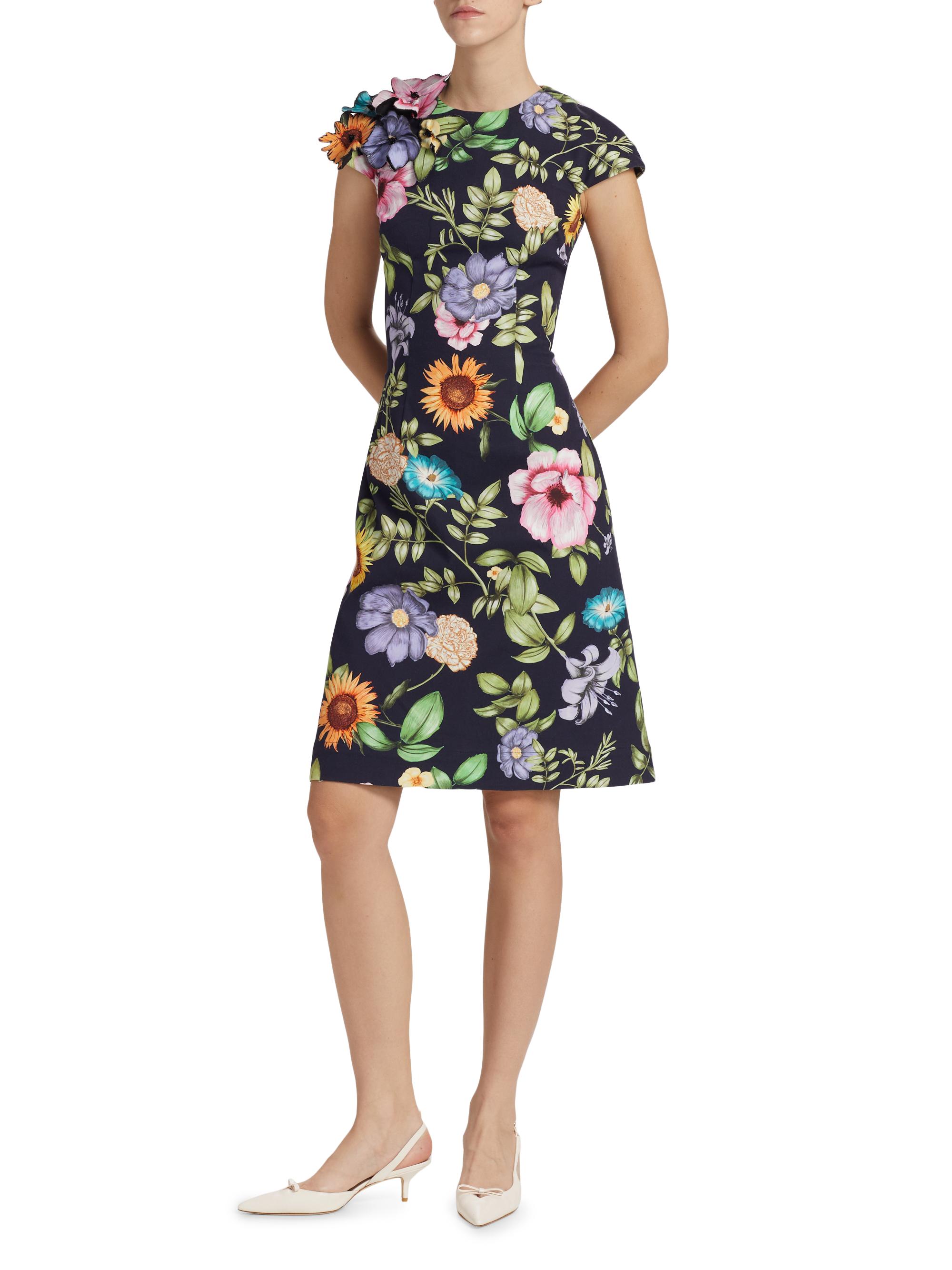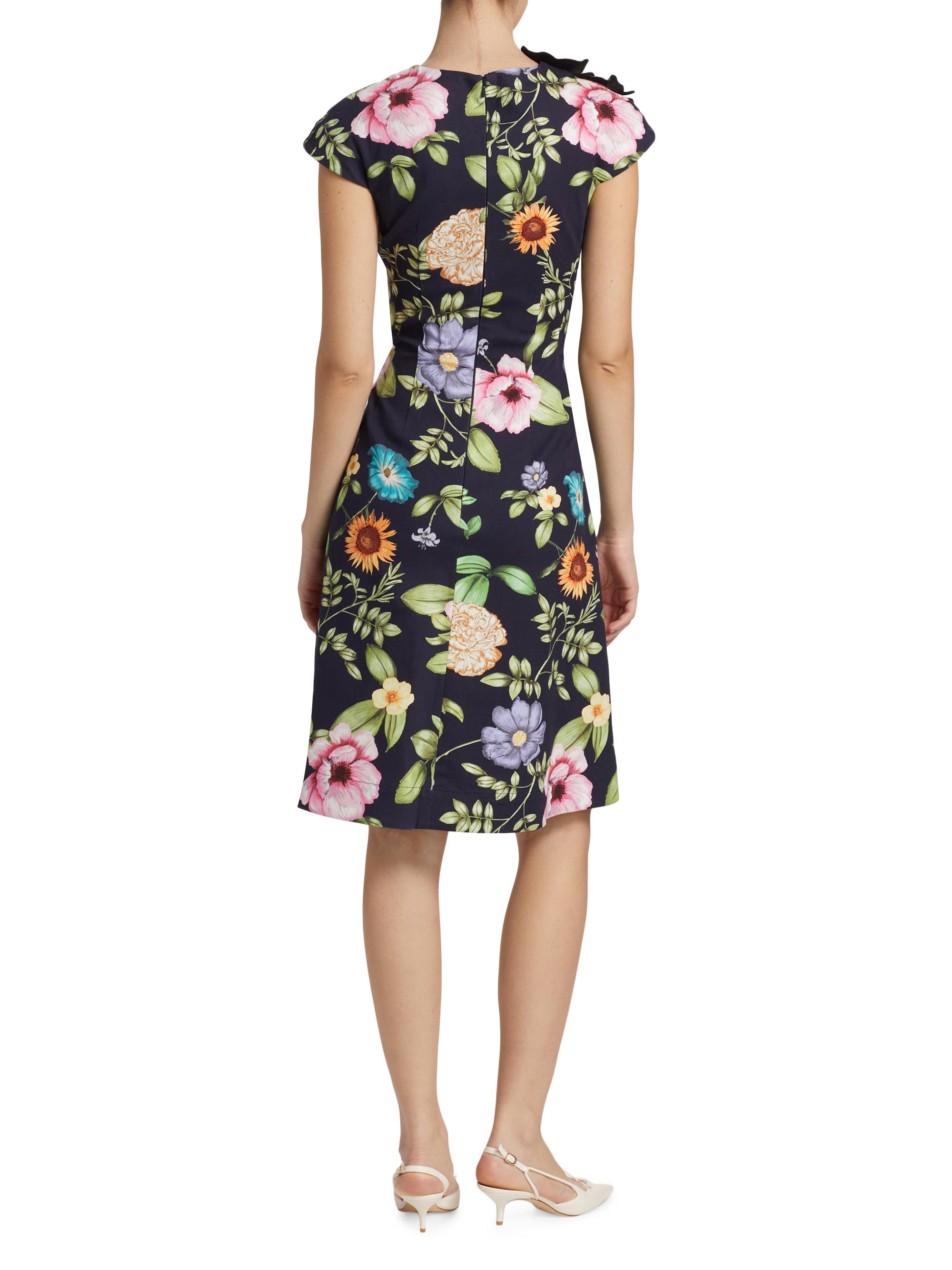 Teri Jon by Rickie Freeman Floral Cap-Sleeve Corsage Midi-Dress