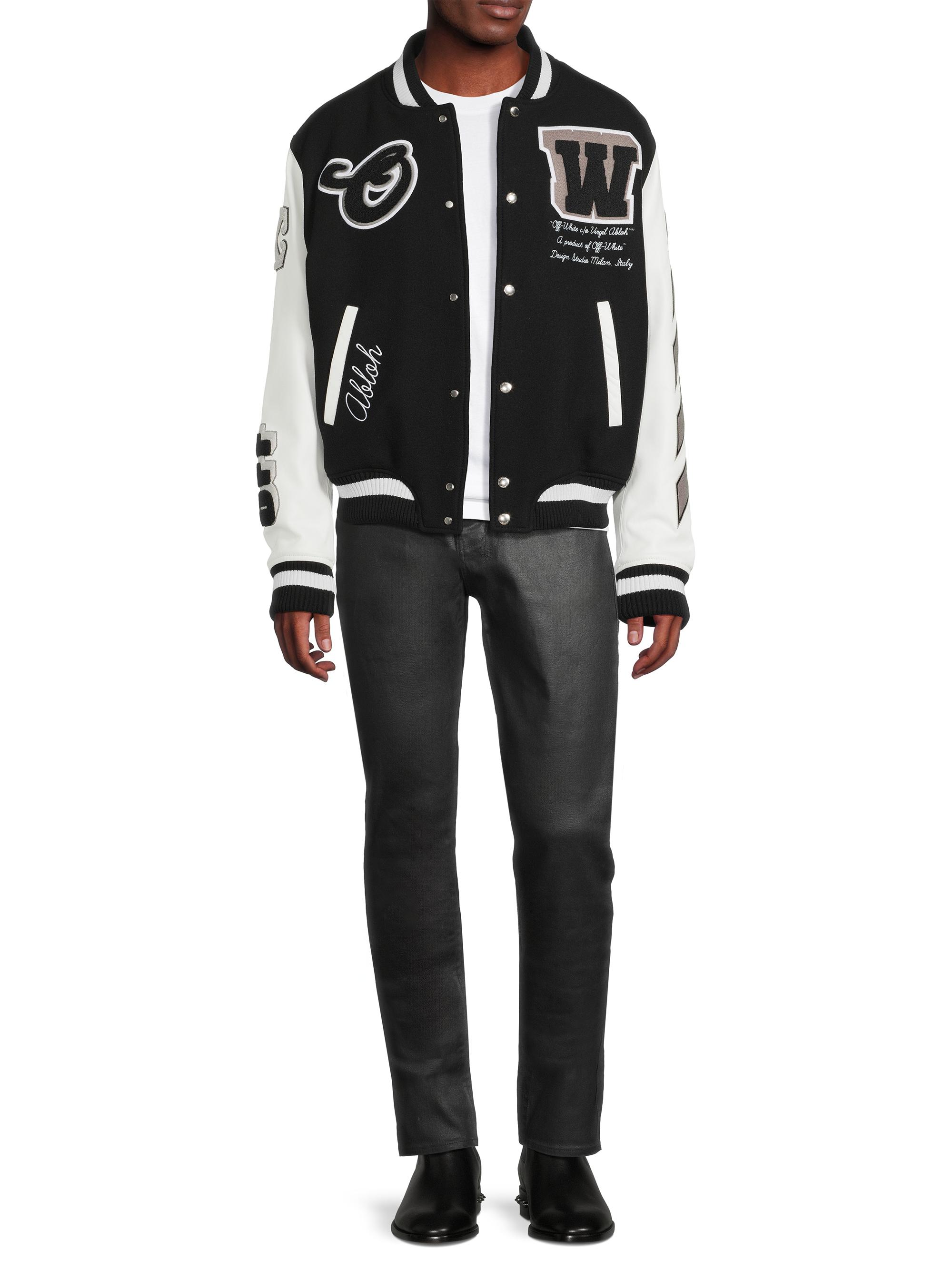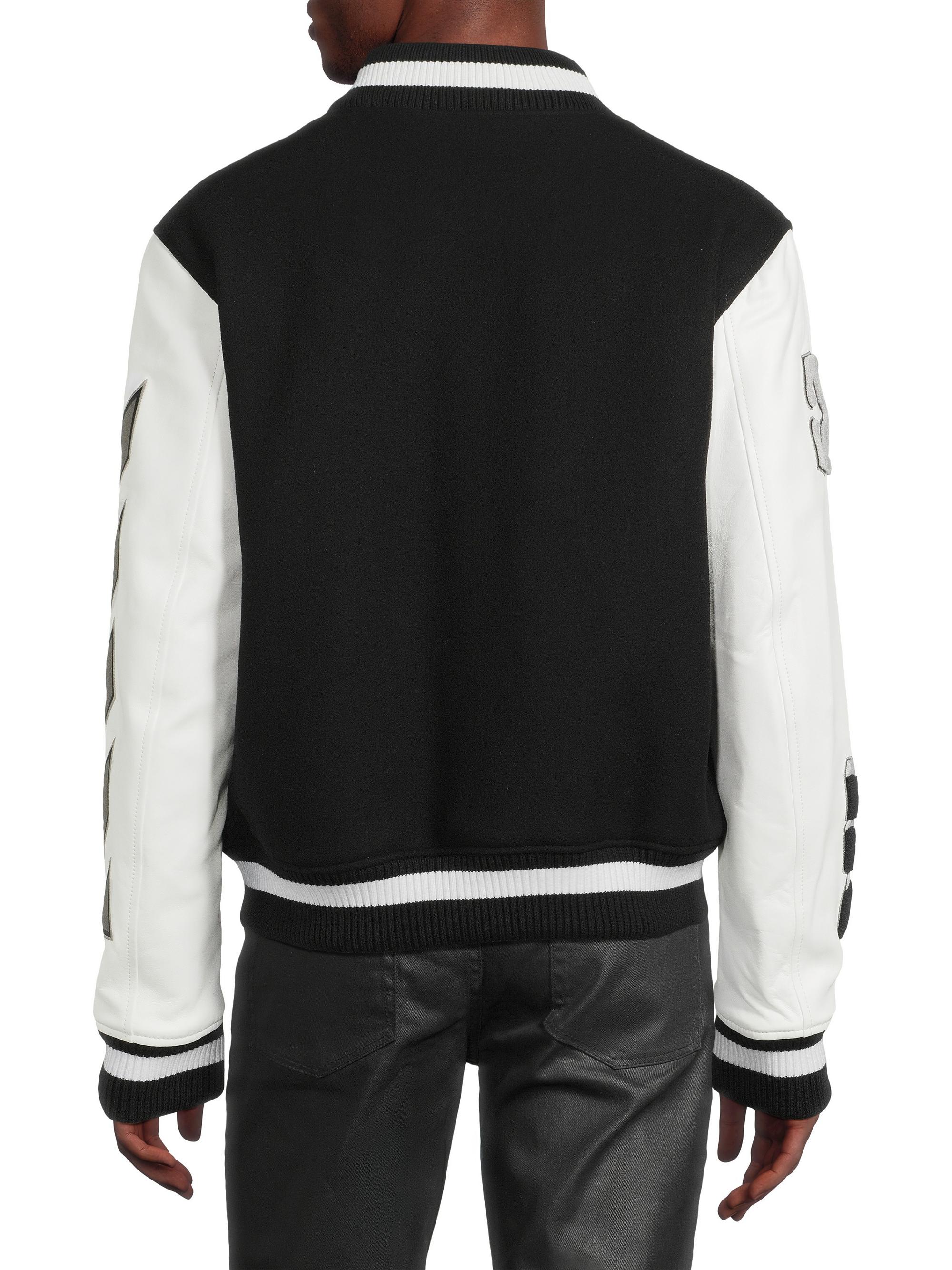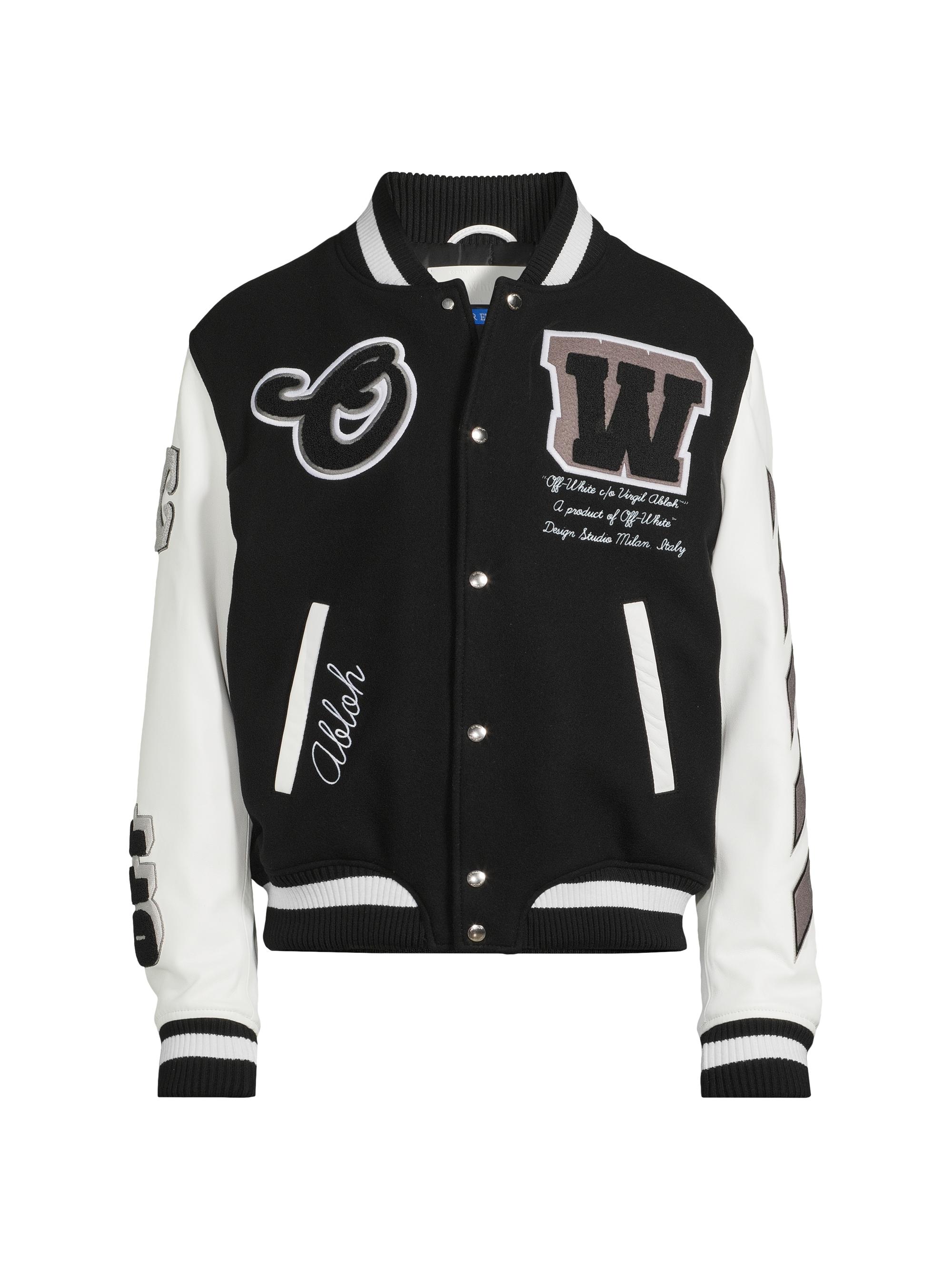 Off-White Wool & Leather Patchwork Varsity Jacket