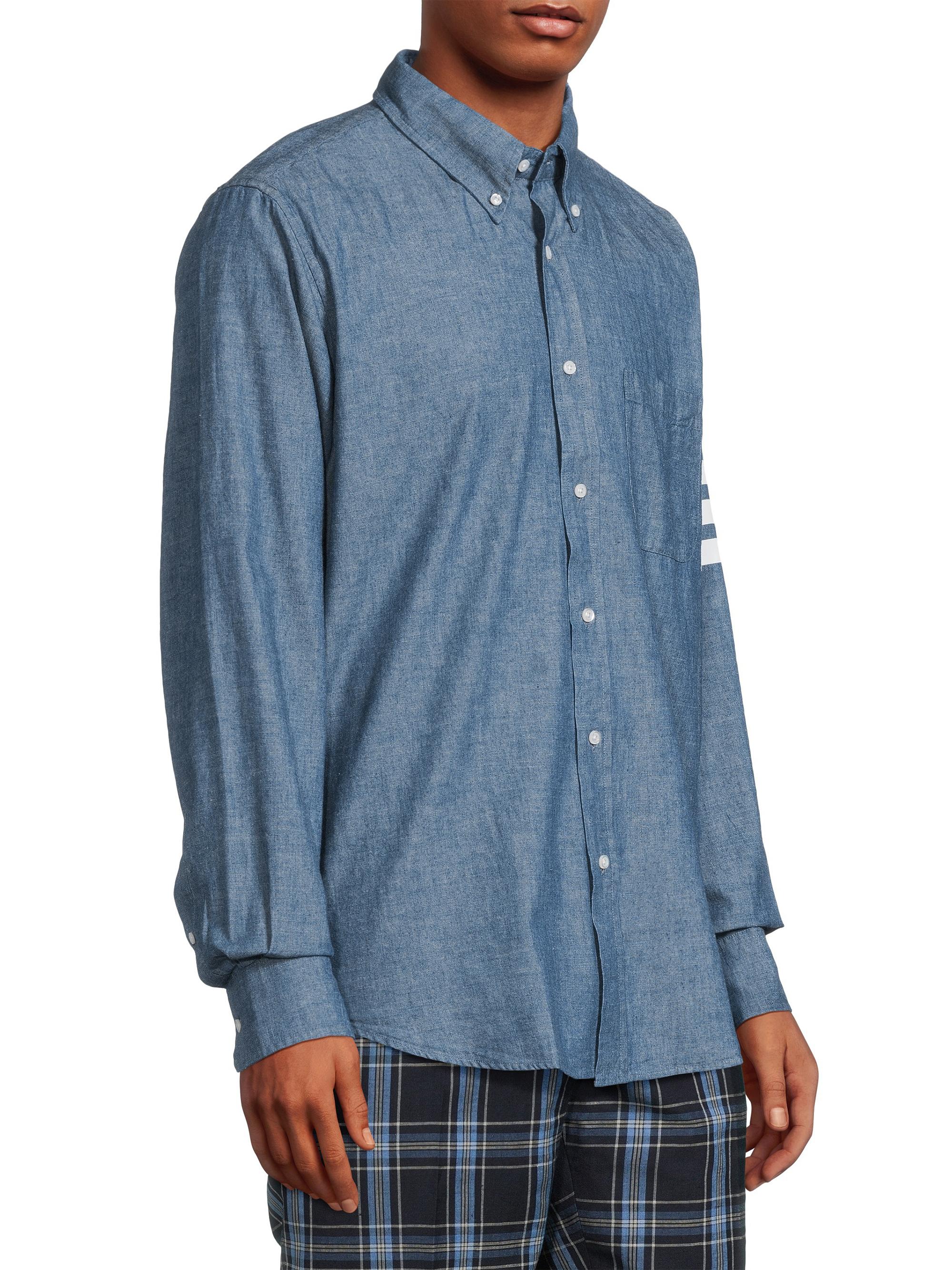 Thom Browne Straight-Fit Button-Down Stripe Long Sleeve Shirt